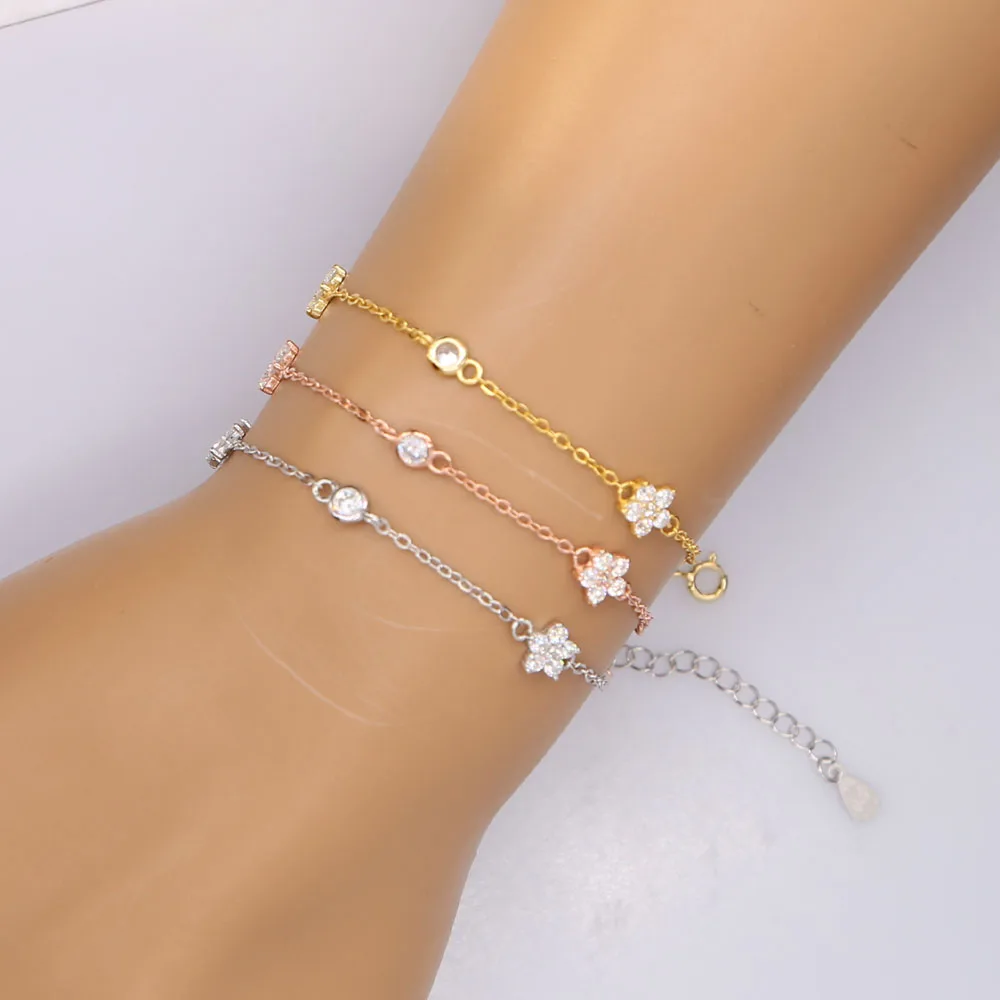 Горячая Распродажа ко Дню Святого Валентина 16 + 5 см Новые Нежные Cz браслет 100% 925 пробы Cz цветы лакомство, минималистичный простой элегантный ювелирные изделия
