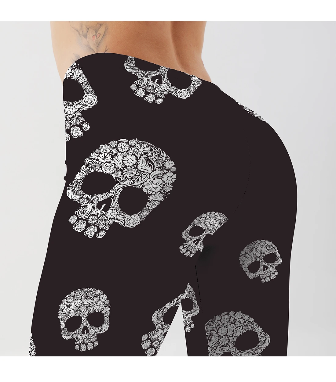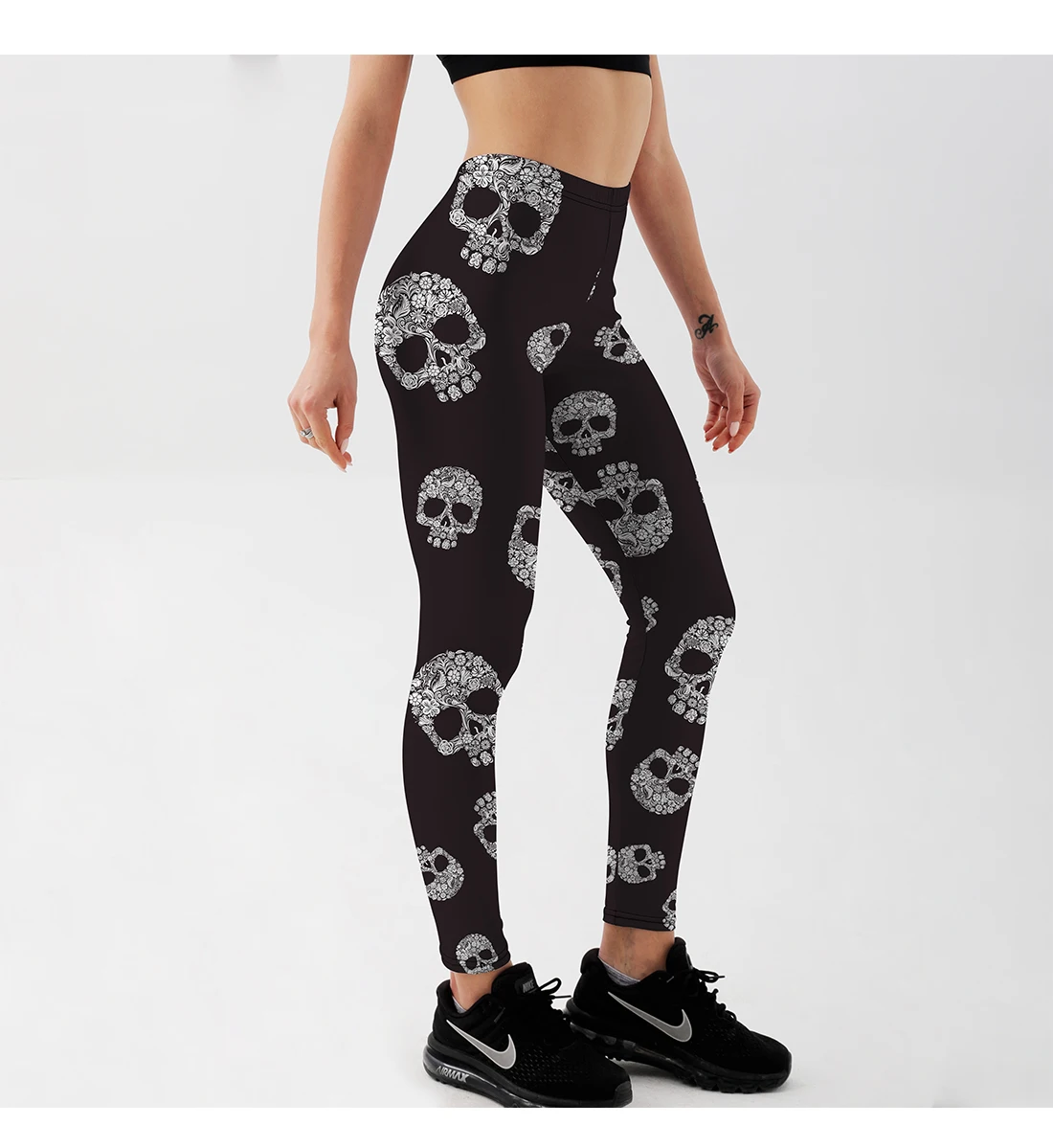 Женские леггинсы Qickitout, Новое поступление 2018, женские леггинсы большого размера, черные Термолеггинсы с черепом, теплые зимние леггинсы для фитнеса
