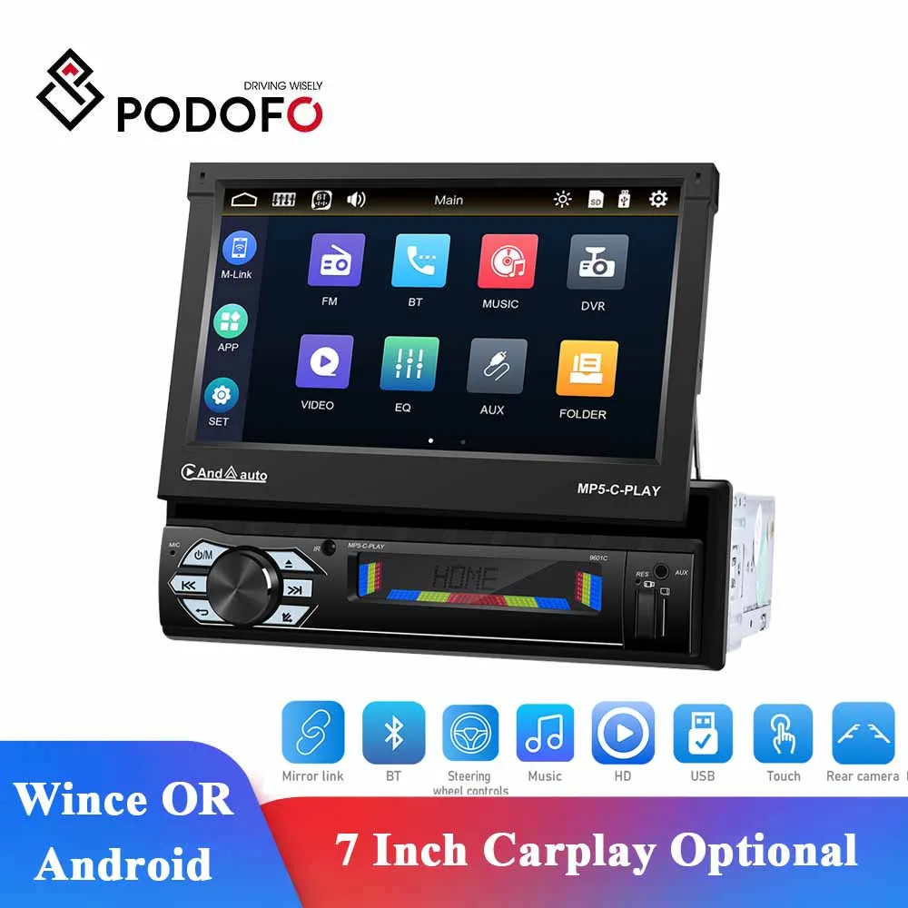 Автомагнитола Podofo, универсальный мультимедийный плеер с выдвижным 7 "экраном, GPS Навигатором, Типоразмер 1 Din