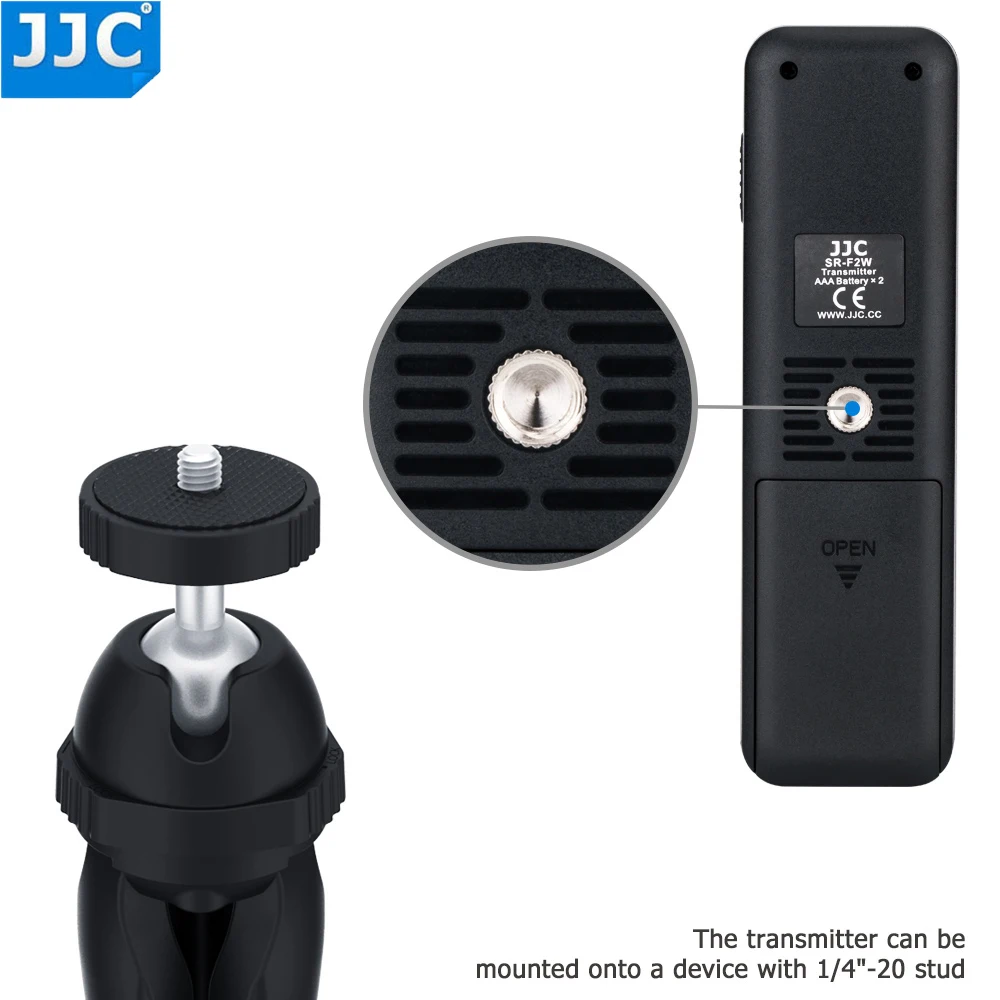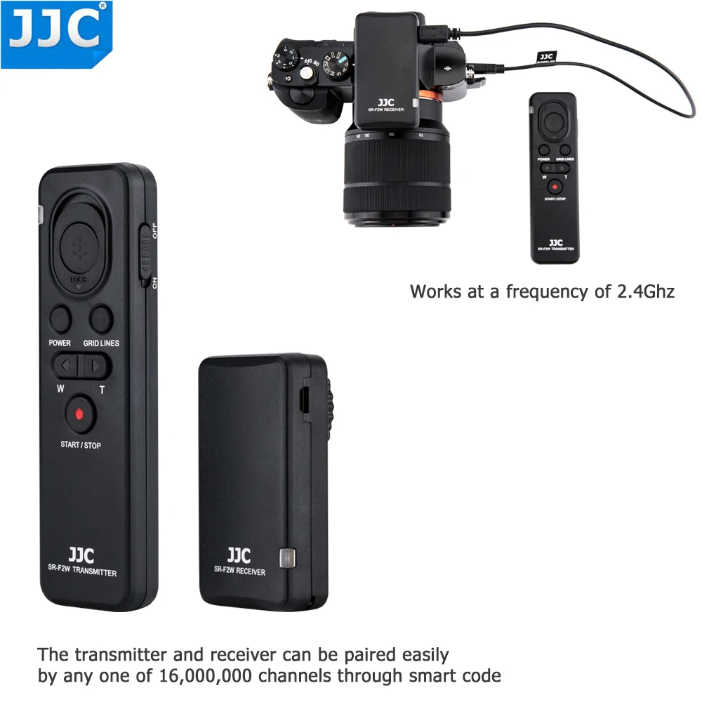 Беспроводной пульт дистанционного управления JJC SR-F2W специально разработан для камер и видеокамер Sony. Вы можете использовать беспроводной пульт дистанционного управления для работы камеры или видеокамеры с несколькими клеммами Sony. Беспроводной пульт дистанционного управления позволяет управлять камерой или видеокамерой издалека при съемке, так что это также предотвращает дрожание камеры. Рабочее расстояние SR-F2W до 100 метров. В комплект входят три части: передатчик, приемник и соединительный кабель. Передатчик и приемник соответственно питаются от двух батарей AAA. Беспроводной пульт дистанционного управления имеет основные функции записи (включение/выключение питания, запуск/остановка видео, фокусировка/съемка, масштабирование и отображение линий сетки). Благодаря функции блокировки JJC SR-F2W идеально подходит для длительной экспозиции лампы и непрерывных снимков. Приемник имеет универсальное гнездо штатива 1/4 "-20 в нижней части, так что вы можете даже установить его на штатив. Кроме того, оснащенный разъемом штатива 1/4 "-20 на задней стороне, передатчик может прикрепить к любому объекту с винтовым разъемом 1/4"-20. JJC SR-F2W заменяет Sony RMT-VP1K и RM-VPR1 пульт дистанционного управления.