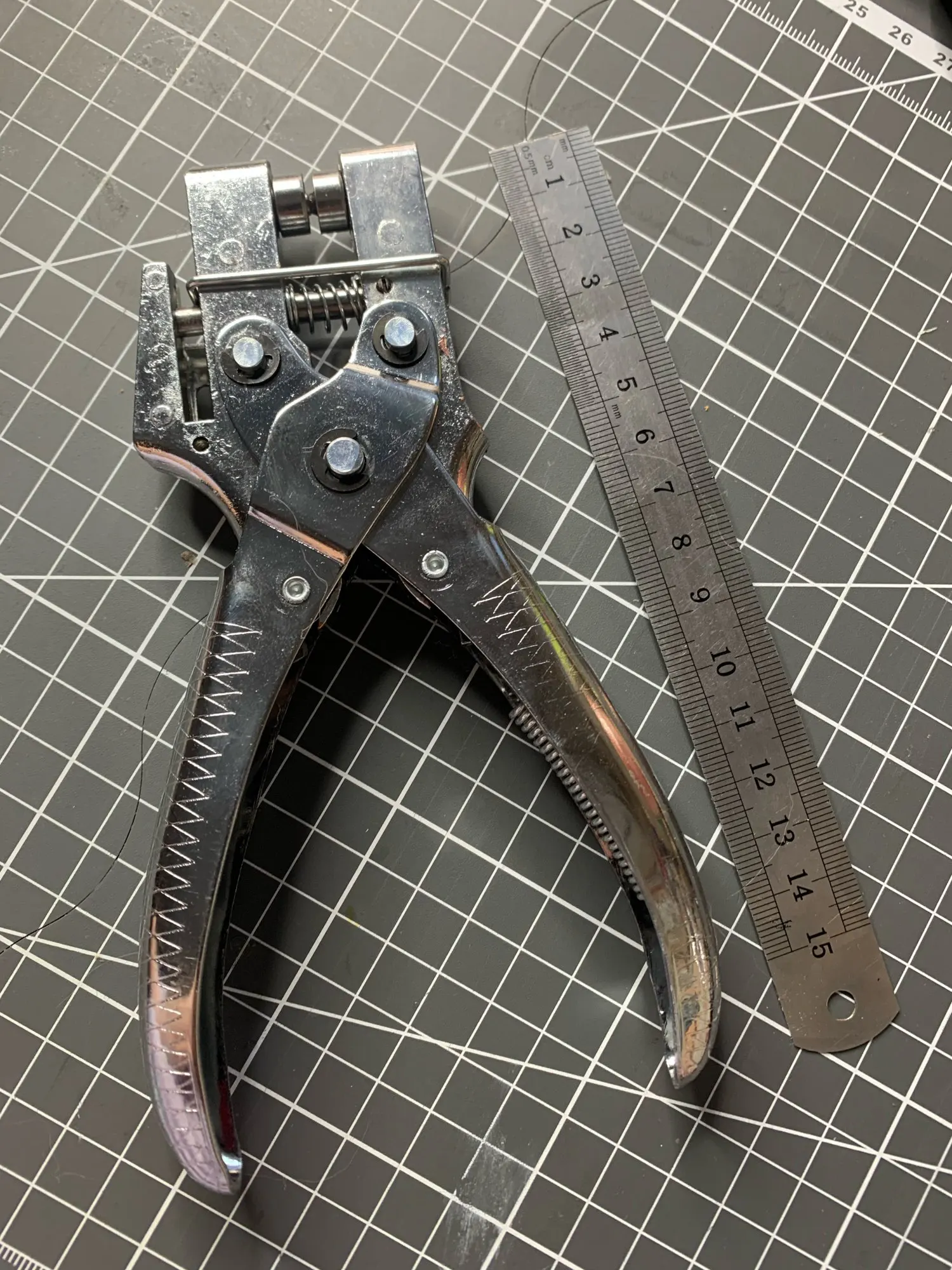 Инструмент сделан из дюрали. Очень хрупкий. ПВХ пленку 3 мм дырокол пробить не смог и мужественно отвалился. Теперь это просто плоскогубцы для люверсов.