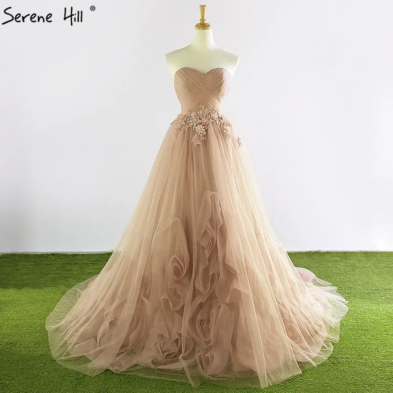 Элегантное вечернее платье с открытыми плечами и цветами ручной раб...