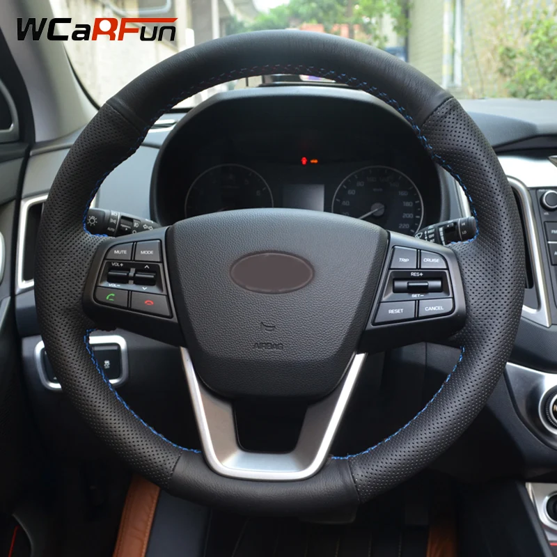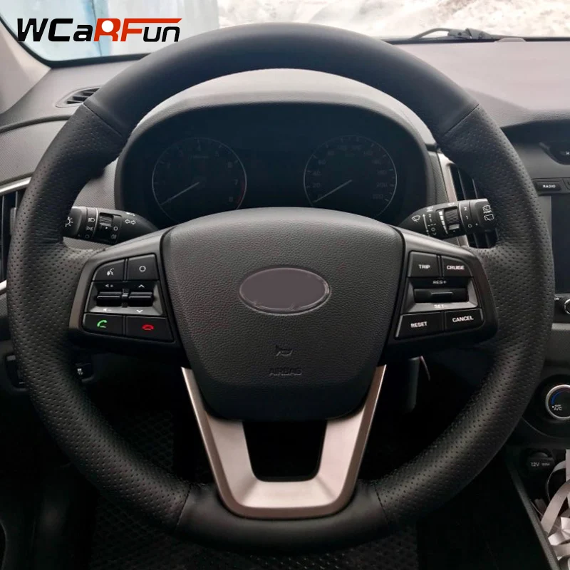 WCaRFun сшитая вручную черная искусственная кожа автомобильная оплетка руля для Hyundai ix25 2014 2015 2016 Creta 2016 2017