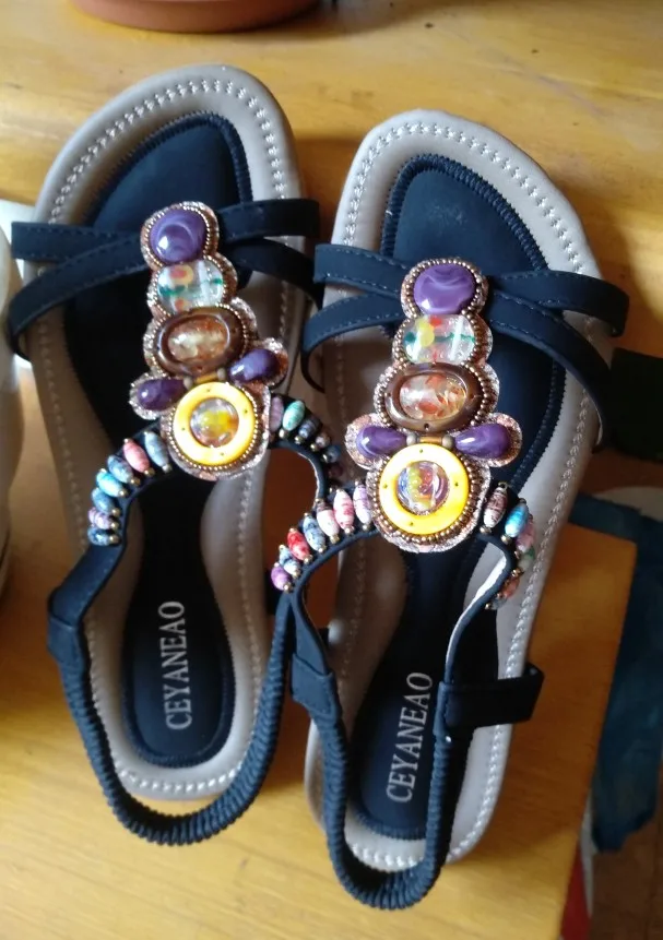 Женские пляжные шлепанцы mvvaqu, богемные женские босоножки, украшенные бисером, летние сандалии, плоская подошва