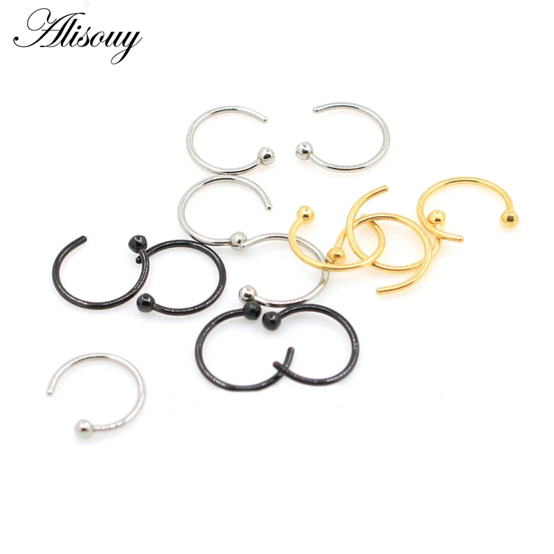 Кольцо Alisouy из нержавеющей стали с имитацией пирсинга женское, Ювелирное Украшение для ноздрей, носа, клипса на украшения для носа и тела, 7 цветов, 1 шт.