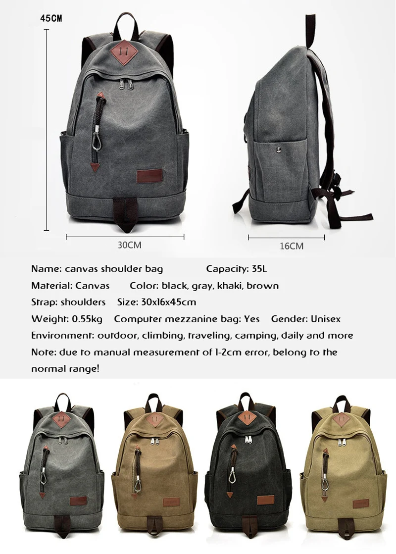 Холщовый рюкзак для мужчин и женщин, винтажный рюкзак для путешеств...