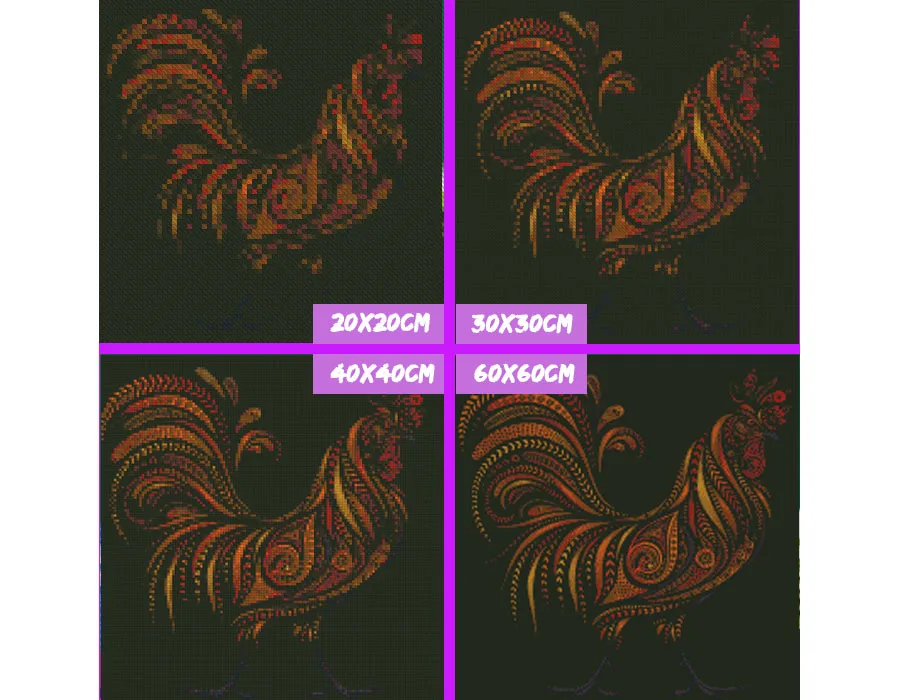 Обычно,Сложные красочные изображения с деликатными деталями требуют большего размера, чтобы выразить его детали. И если вы хотите, чтобы общий взгляд на эффект каждого размера, следующее изображение только для справки. Вы также можете оставить нам сообщение, если вам нужен большой размер или у вас есть другие вопросы.
