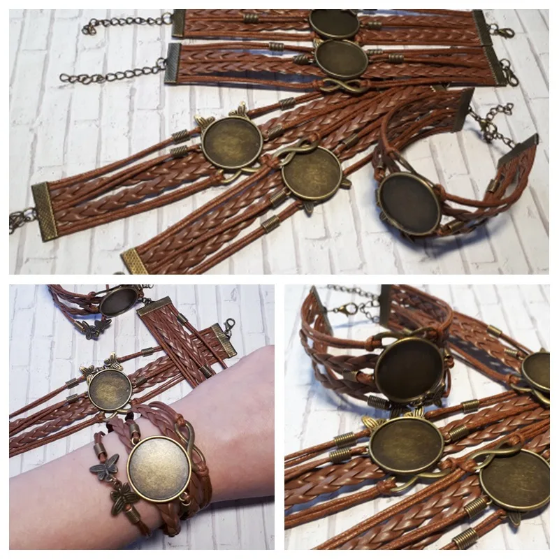 Кожаный браслет сделай сам для самостоятельного изготовления ювелирных изделий, 5 шт., пустое основание для круглых ювелирных изделий 25 мм