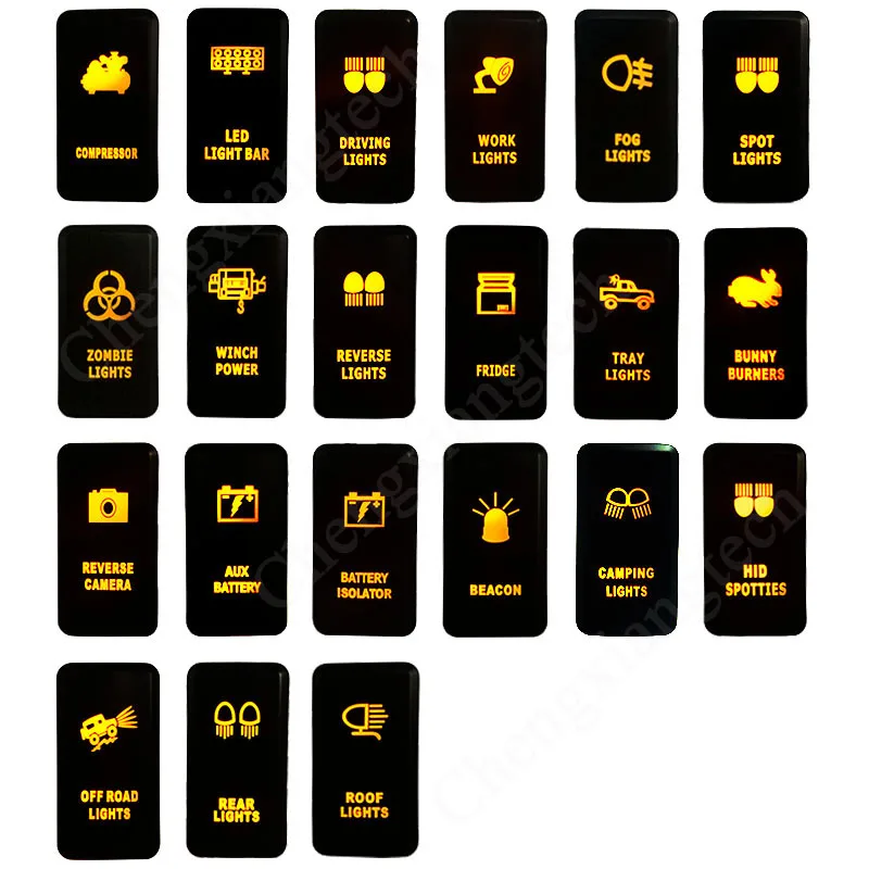 Компрессор, светодиодный светильник, приводной светильник s, рабочий светильник s, противотуманный светильник s, Точечный светильник s, светильник zombie s, лебедка, обратный светильник s, холодильник, поднос Фонари, Банни горелки, обратная камера, aux батарея, батарея изолятор, маяк, кемпинг огни, hid прожекторы, внедорожные огни, задние фонари, крыша Освещение