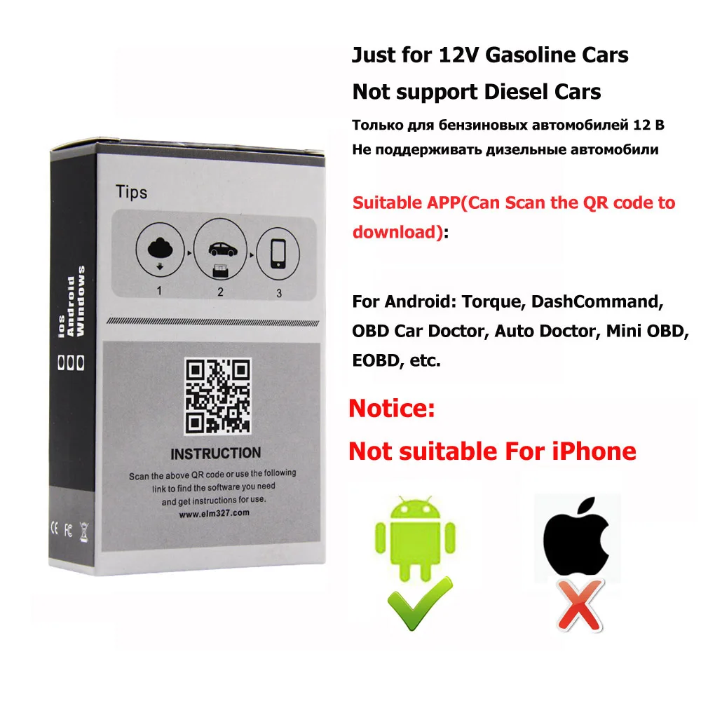 Этот OBDПодходит для Android (для iPhone требуется Bluetooth 4,0 OBD). Мы предоставим вам подходящее программное обеспечение в qr-коде (на картонной коробке)