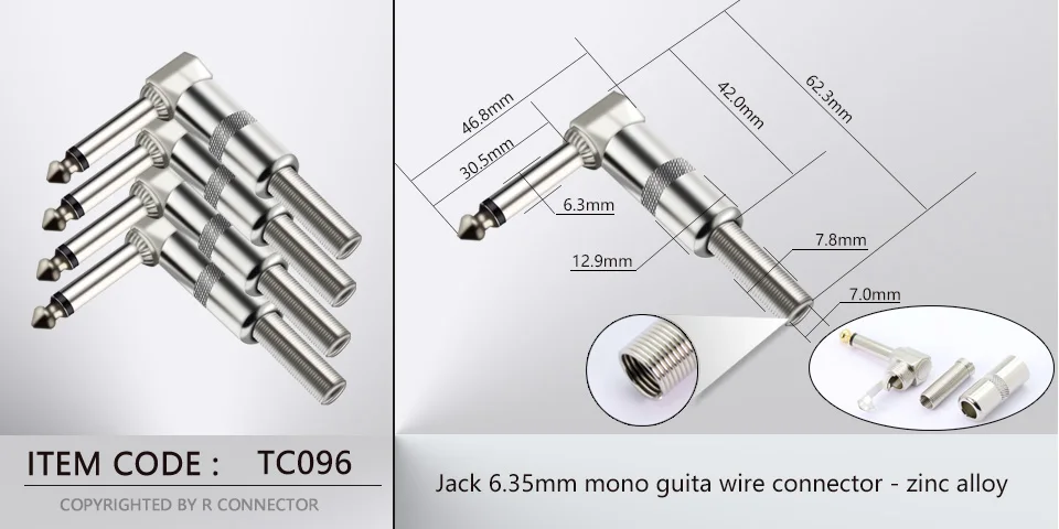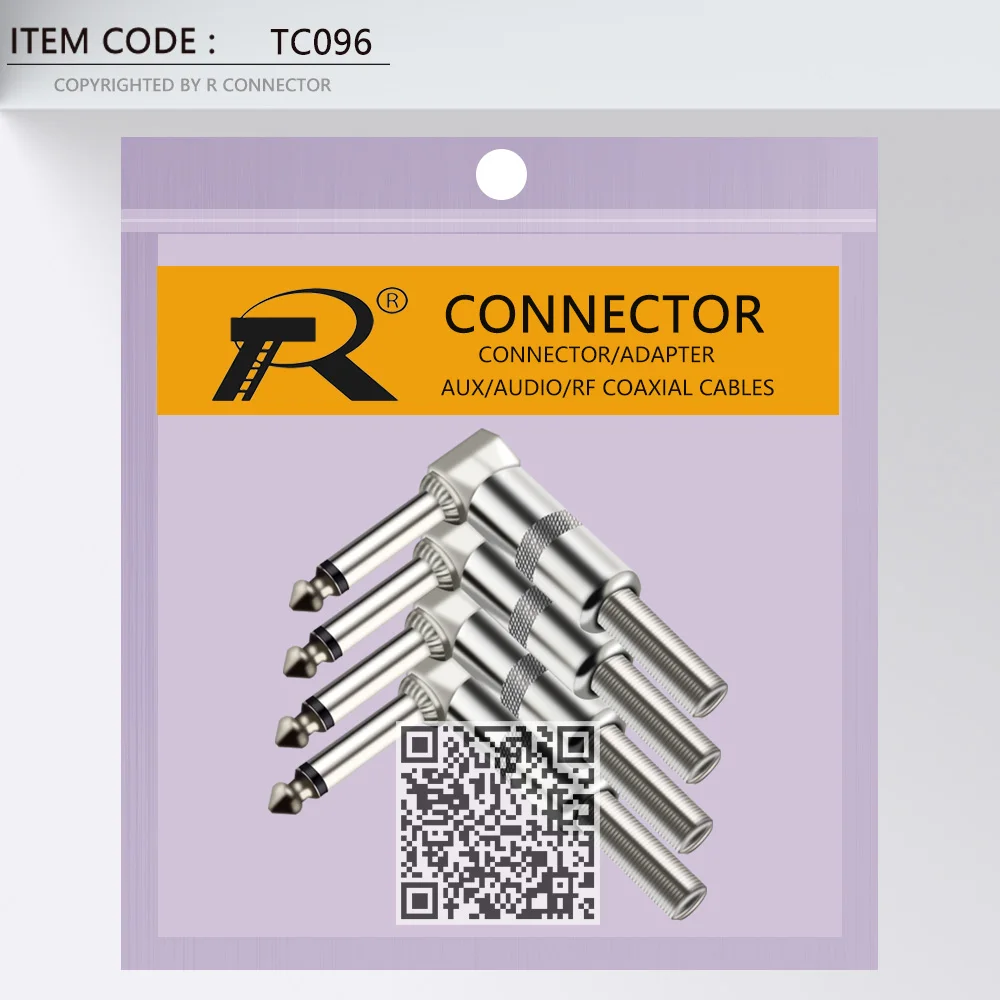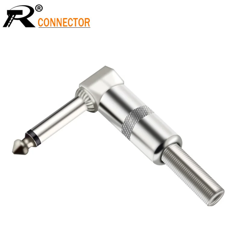 Штекер для микрофона 6,35 мм, угловой, 6,3 мм, с никелированным покрытием, 1 шт.