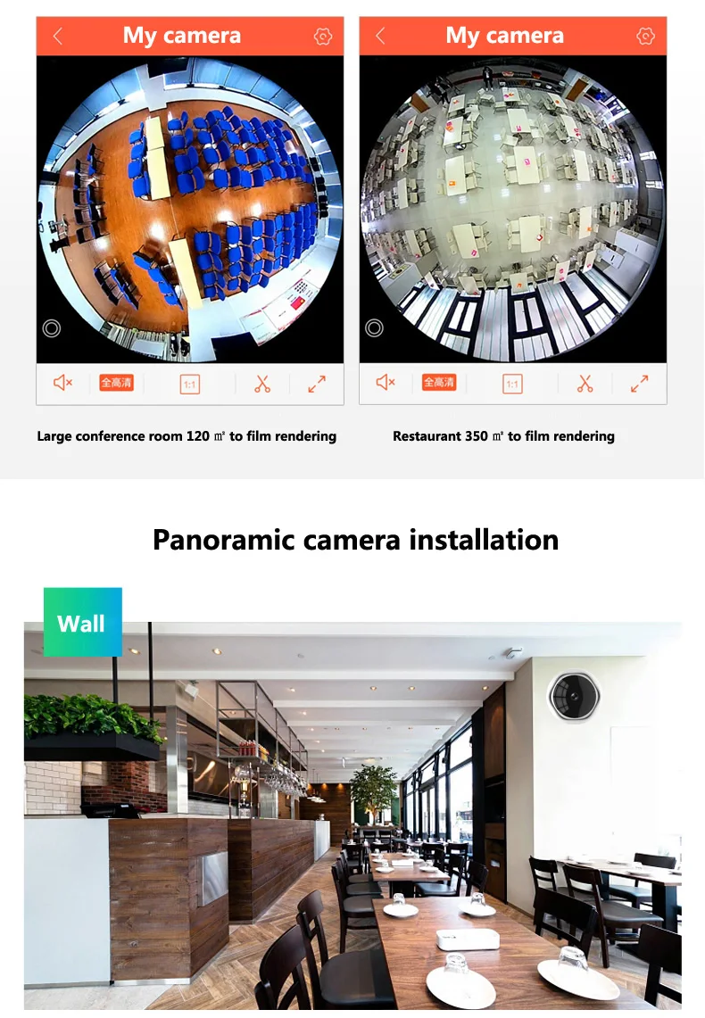Панорамная IP-камера 5 Мп, XM, 360 градусов, беспроводная сетевая Wi-Fi IP-камера рыбий глаз, встроенный микрофон, Wi-Fi