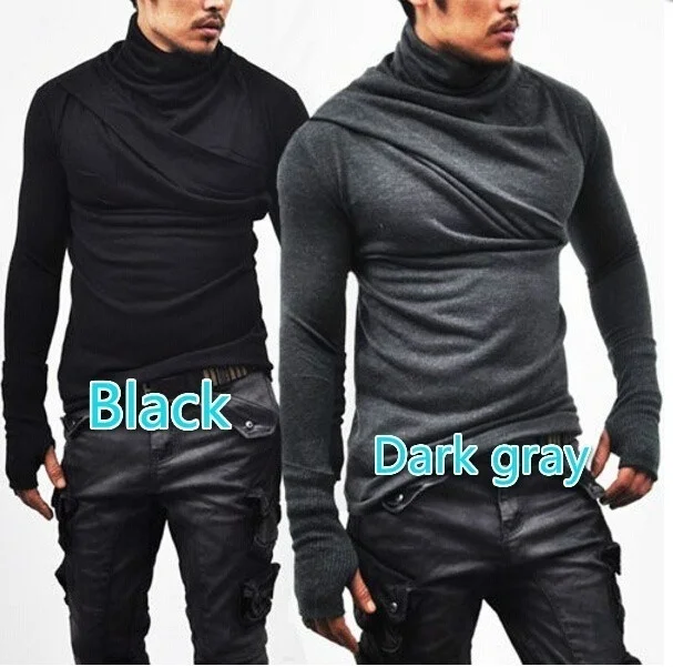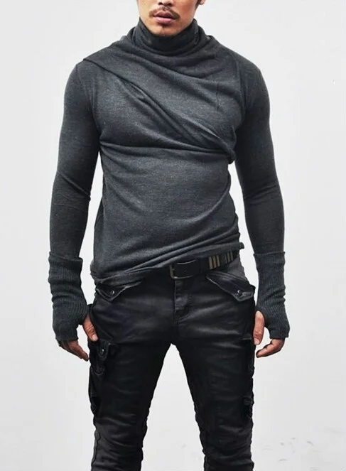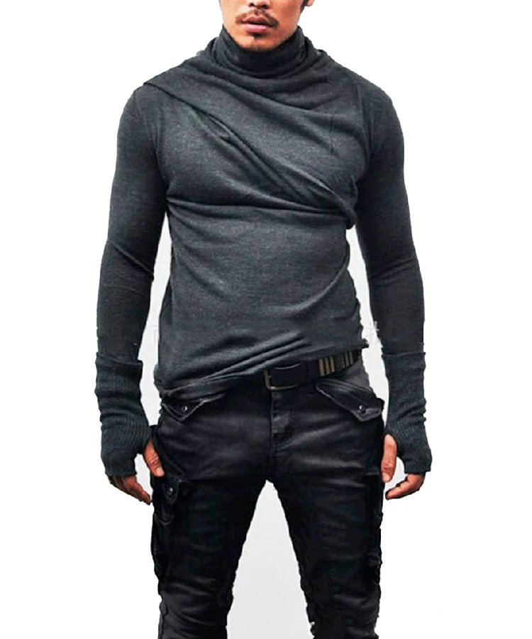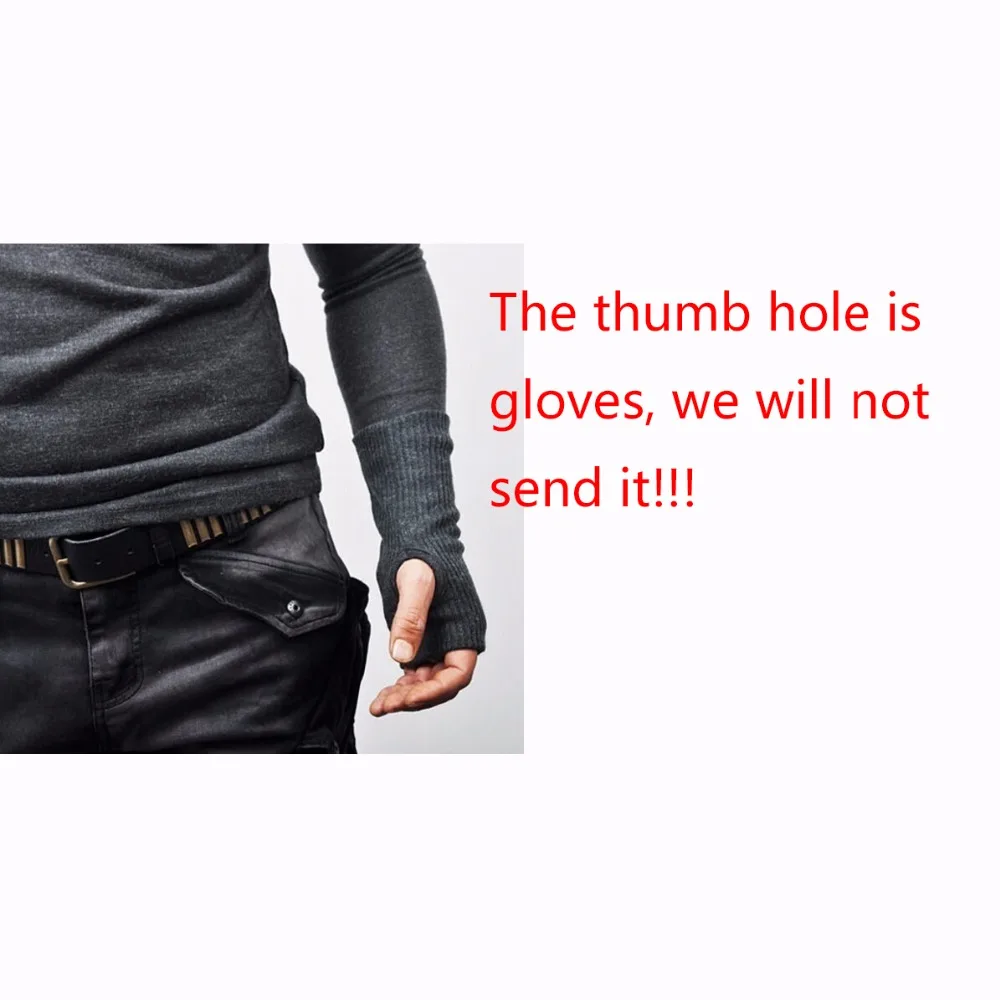 Футболка мужская с воротником-хомутом, тенниска с отверстиями для большого пальца и манжет, повседневная майка с длинным рукавом, приталенная, с круглым вырезом, в стиле хип-хоп, уличная одежда