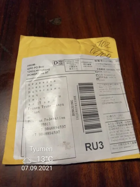 Страна: RU Доставка: Cainiao Super Economy 05.05.2021