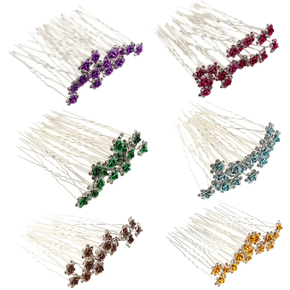 20 шт.упак. женские цветы Шпилька Свадебные Свадебная обувь с украшением в виде кристаллов цветы Шпилька U образный зажим для волос аксессуары для волос оптовая продажа
