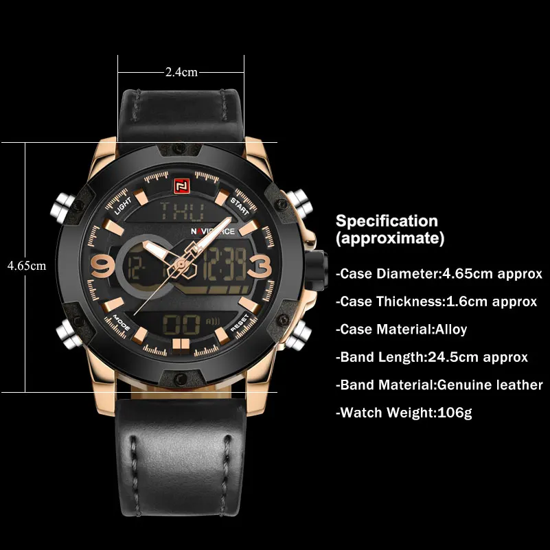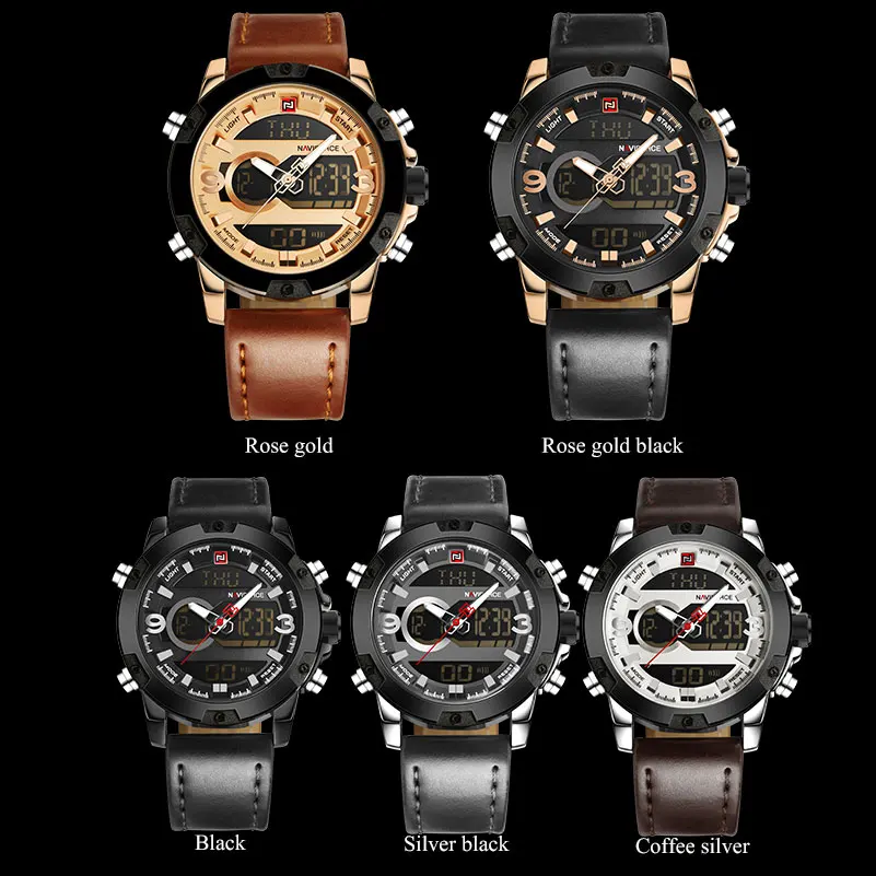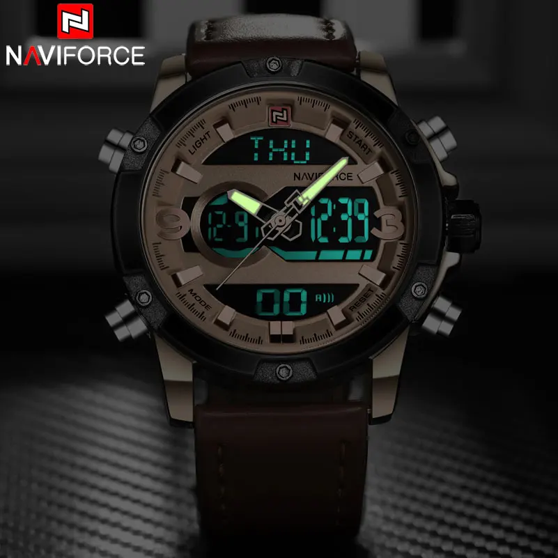 Часы NAVIFORCE мужские, спортивные, водонепроницаемые, аналоговые, цифровые, светодиодные, с двойным циферблатом, 30 м