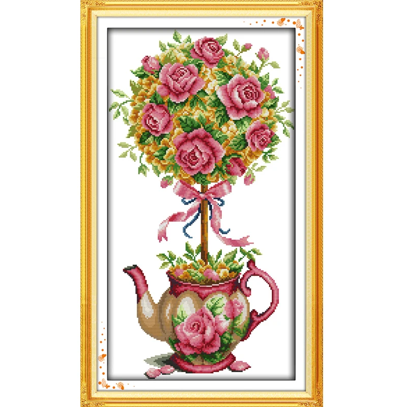 Набор для вышивки крестиком букетом и чайником 11CT ткань с принтом 14CT холст DMC Счетный китайский набор вышивки рукоделие