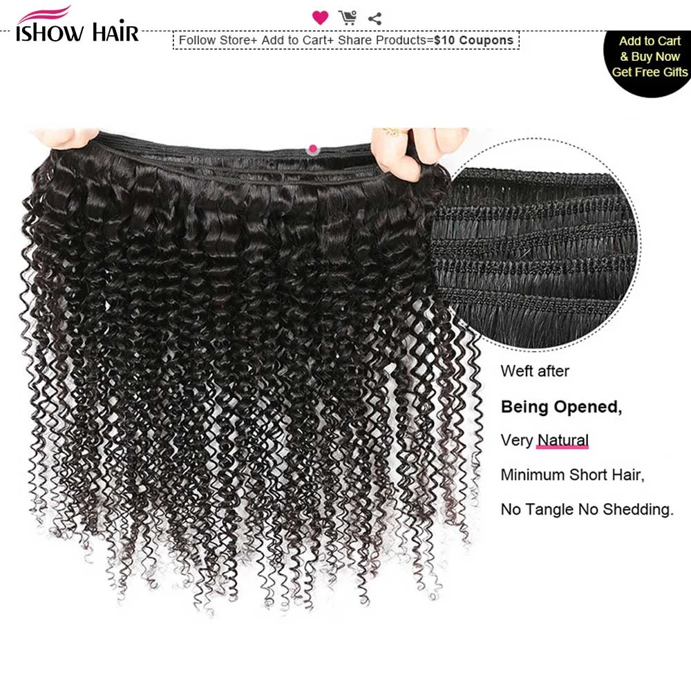 Индипряди волос Ishow, кудрявые волнистые пучки человеческих волос, 1 шт., наращивание волос натурального цвета, двойное переплетение, не Реми