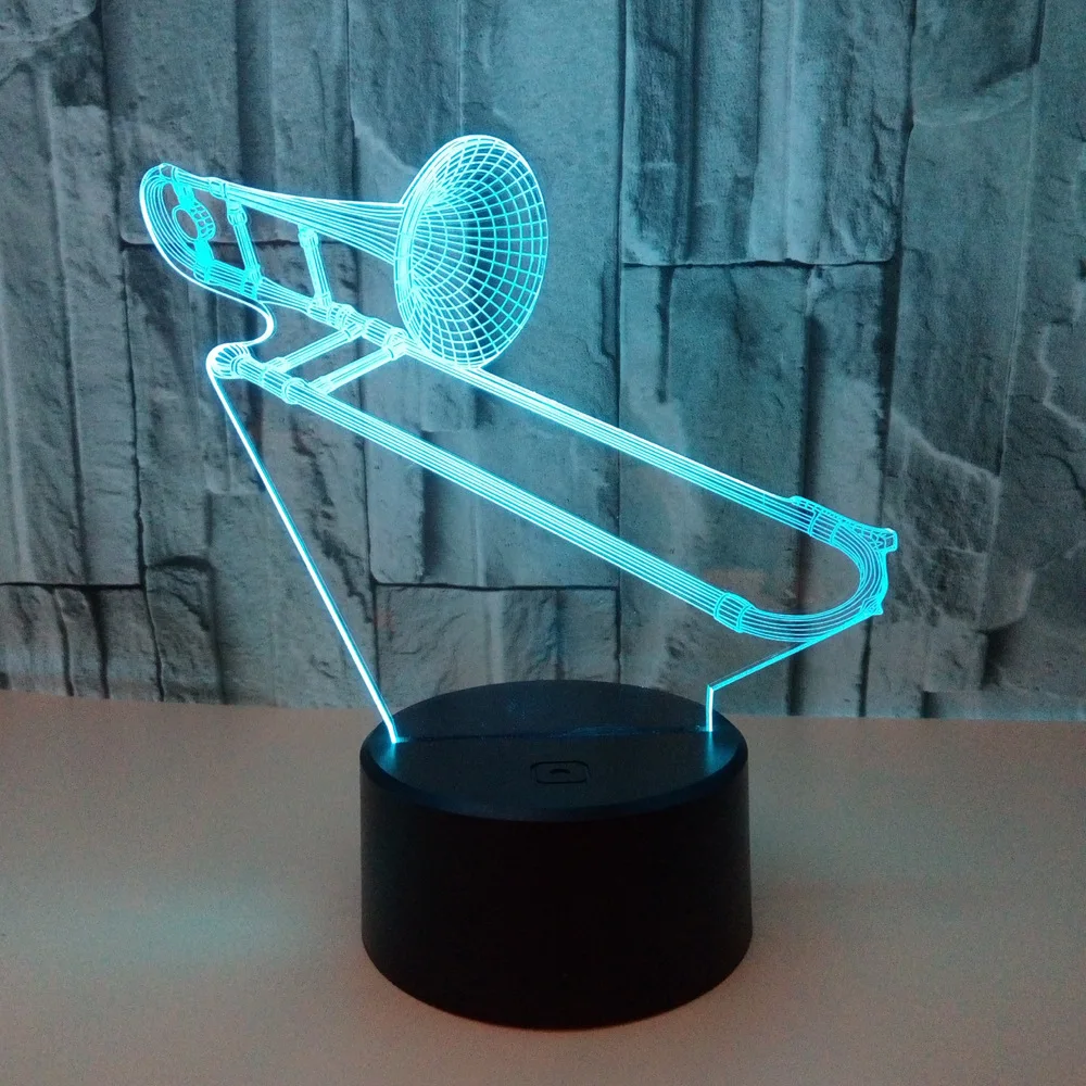 Музыкальные инструменты Красочная 3d лампа Акриловая Trombone 3d ночник дистанционный сенсорный выключатель 7 цветов Сменные светильники