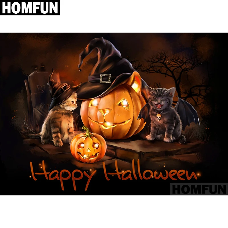 Алмазная живопись HOMFUN A01269, полноразмернаякруглая вышивка Хэллоуин, 5D сделай сам, вышивка крестиком, домашний декор