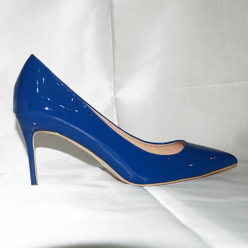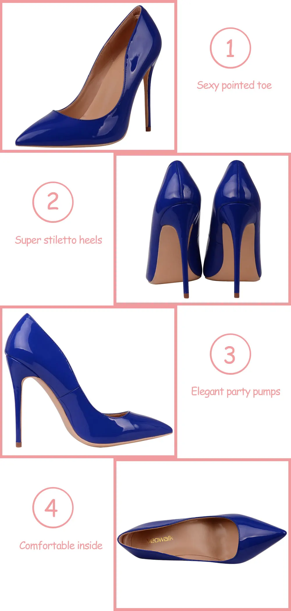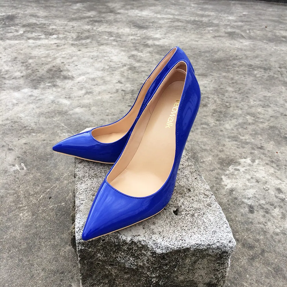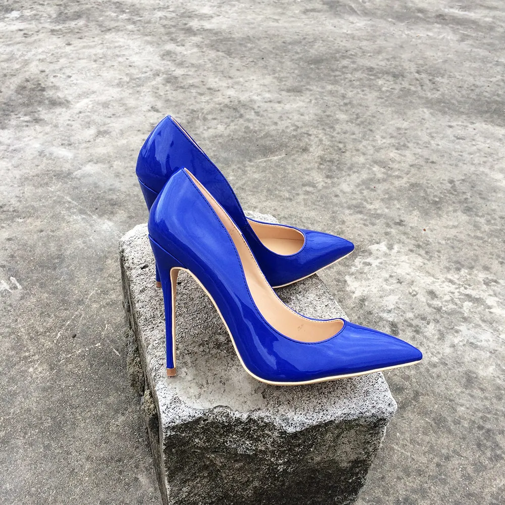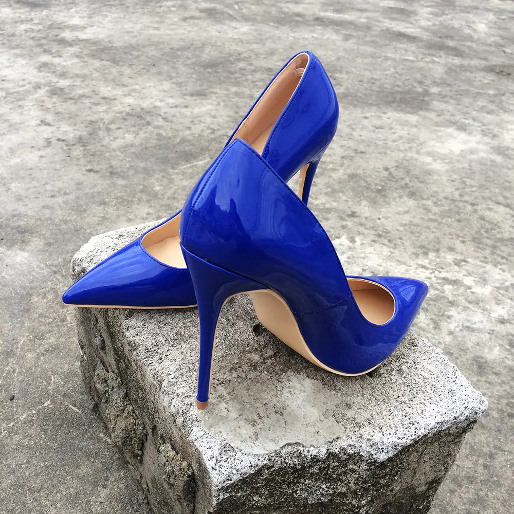 Veowalk, ярко-голубые лакированные женские классические туфли-лодочки без застежек, женские туфли-лодочки с острым носком, на очень высоком каблуке, принимаются заказы