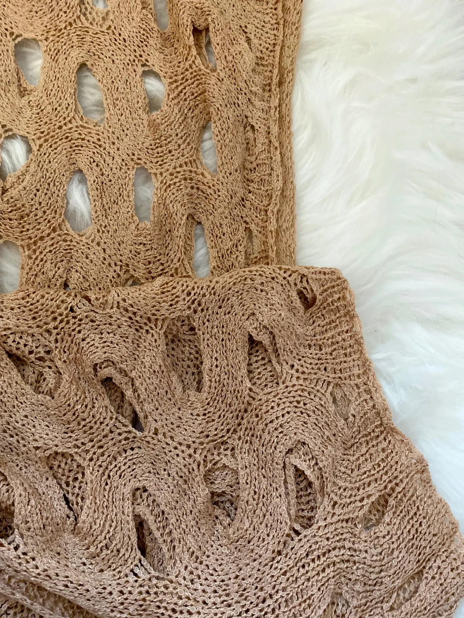 Потрясающее пляжное платье машиной вязки. Приятное, мягкое, очень романтично смотрится. На загорелом теле просто пушка. Размер единый, на рост 164 см длина до середины щиколотки. Рукава клёш, под грудью завязки можно регулировать по своим параметрам. Продавца рекомендую, заказываю в этом магазине уже не первый раз. Качество всегда на высшем уровне, высылают уже на следущий день, быстрая доставка!