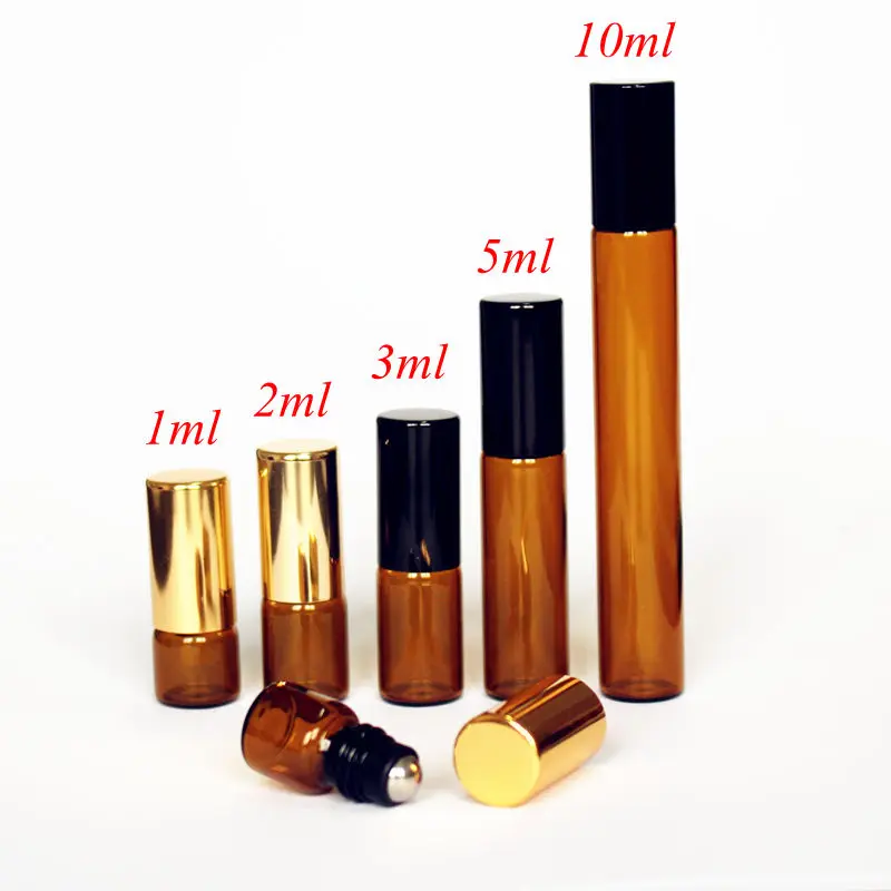 50 шт.лот 1 мл флакон из янтарного стекла в рулоне, тонкая стеклянная бутылка для эфирного масла с металлическим роликовым шариком, стеклянные флаконы для ароматерапии