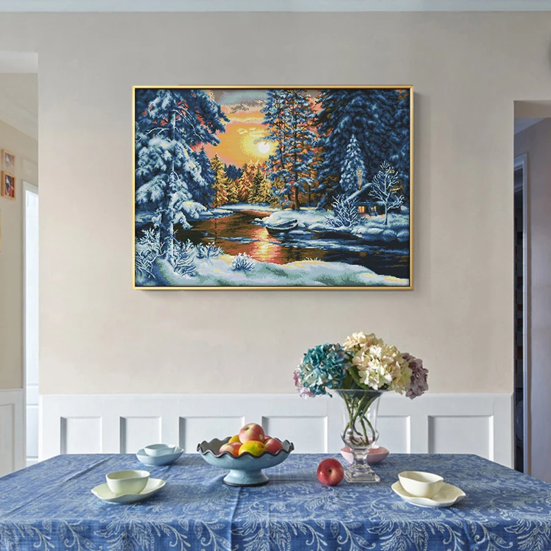 Набор для вышивки крестиком, зимний Снежный пейзаж, вода, берег рек...