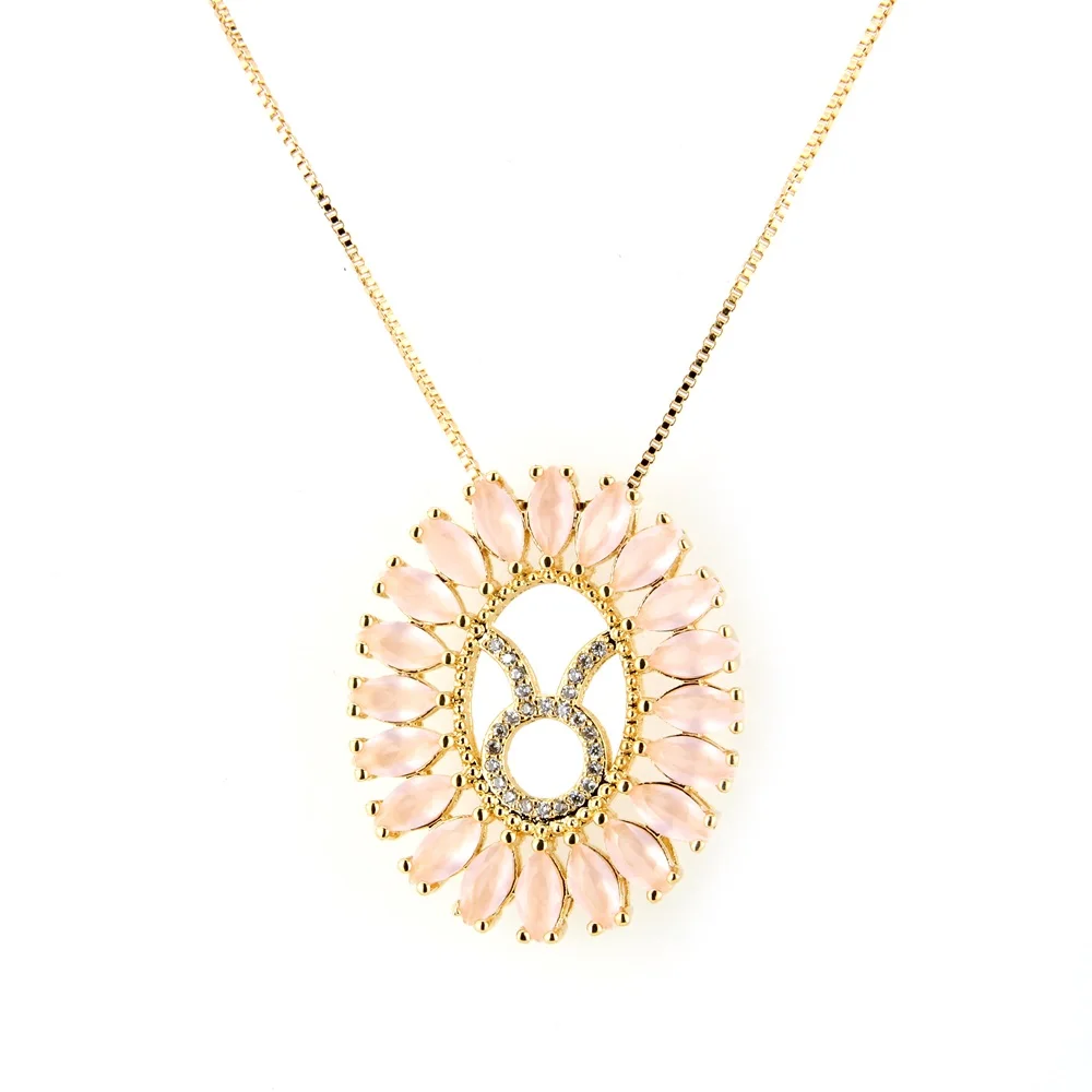SUNSLL золотистый цвет медь розовый кубический цирконий 12 созвездий кулон ожерелья женские модные ювелирные изделия медный CZ Colar