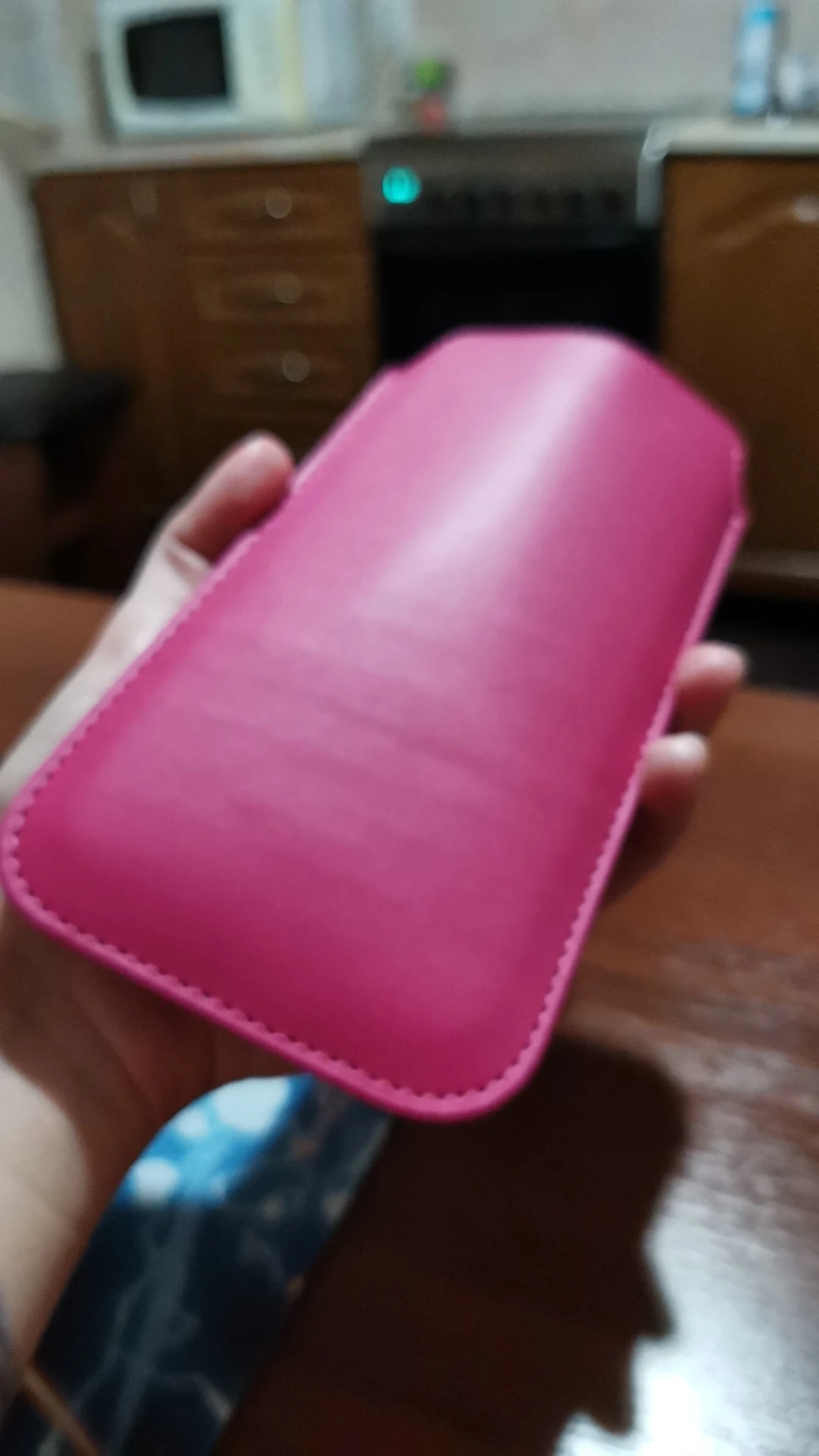 Товар пришёл очень быстро. Хорошо прошит и материал - кожзам нормальный такой, строчки ровные, цвет чёрный, хлястик хорошо вытягивает телефон, по размеру подошёл. С продавцом не общалась, отправил посылку очень быстро!