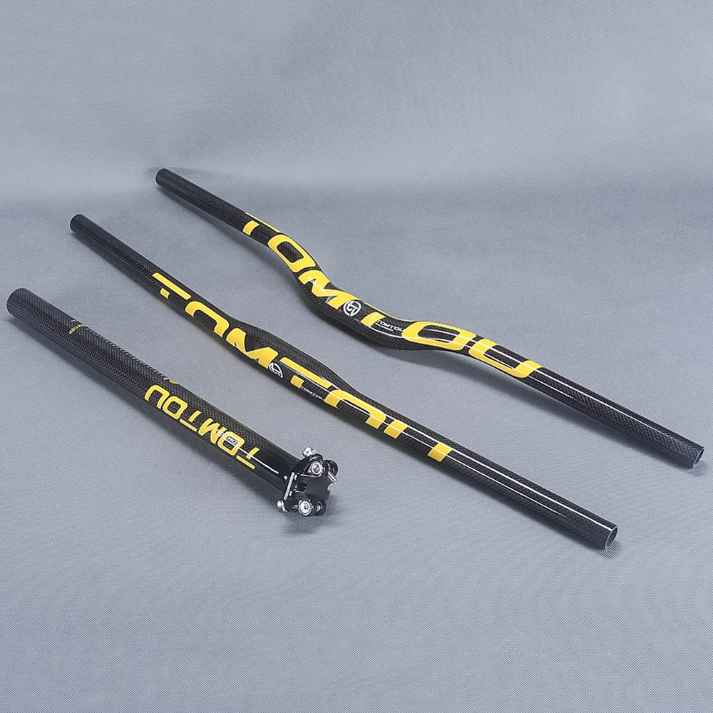 TOMTOU горный велосипед велосипедный Руль + подседельный штырь + стебель 3K Углеродное волокно MTB набор для велосипеда глянцевый желтый-TS5T37