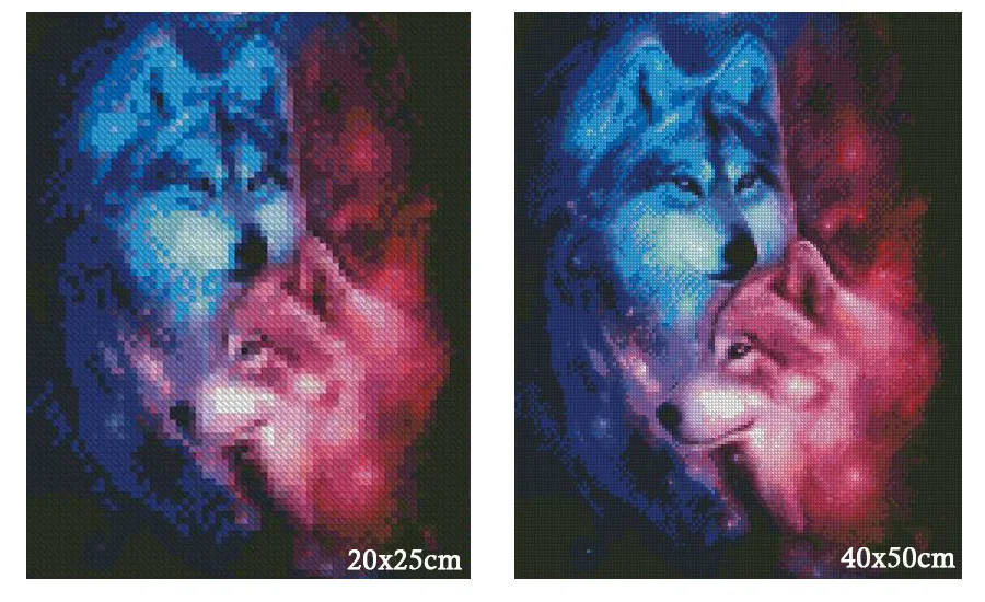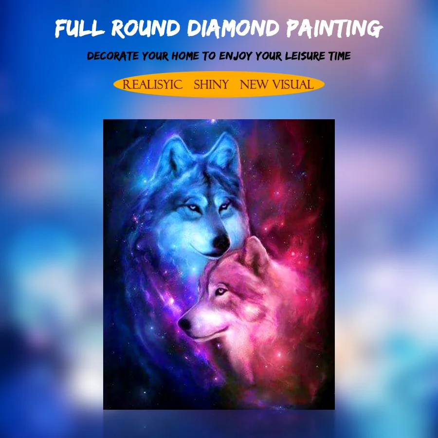 Алмазная картина 5D "Волчья пара", 3D Вышивка крестом, 100% г., круглая Алмазная мозаика стразы, животные