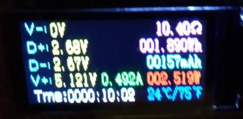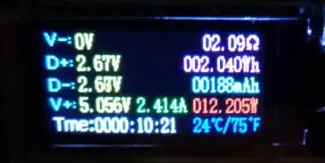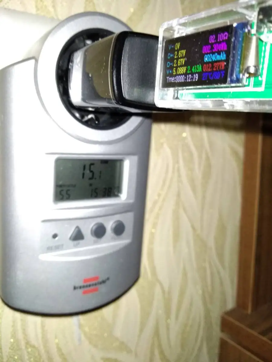 Измеренное напряжение и ток на различных значениях сопротивления (см. Фотографии). Выглядит так, что адаптер имеет коррекцию активной мощности: на макс. токе он имеет максимальное напряжение. По описанию: 5В @ 2.1A. Измерения: 5,2 в @ 2.2A. Во время любого сопротивления напряжение всегда имеет значение около 5,1-5,2 в. Пульсирование напряжения неизвестно: не измеряется. Без потребляемой мощности: менее 0,1 Вт (не зарегистрирован на моем оборудовании). Я любитель аудио. В тихой комнате я могу услышать шум адаптера от расстояния 1,5 метра, затем адаптер не имеет полезной нагрузки. С рабочей нагрузкой его слышно с расстояния около 0,7 метров. Идеально подходит для мобильного адаптера питания в рюкзаке. Потому что я думаю, что это не для спальни, и может использоваться для отдаленной гостиной. Очень легкие, компактные размеры, значения напряжения при любой нагрузке с током менее 2 а просто превосходны. Может быть идеальным, если резать шум. (И пульсирование напряжения не измеряется).