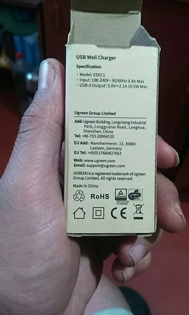 Доставка до Перми 21 день, трек отслеживался постоянно, упаковано как всегда в фирменный пакет. Превосходное качество материалов и зарядки - UGREE всегда высокое качество! Покупал для друга зарядку + кабели 1м и 2м этой Фирмы. Всё точно соответствует описанию. Зарядка миниатюрная, выдаёт заявленные 5 В и 2,1 А, проверил тестером под нагрузкой - напряжение не проседает ниже 5,02В. Греется минимально. Отличный магазин и продавец, уже более 10 покупок в данном магазине и всегда радует качеством и сервисом - всем рекомендую любую продукцию UGREEN!!!