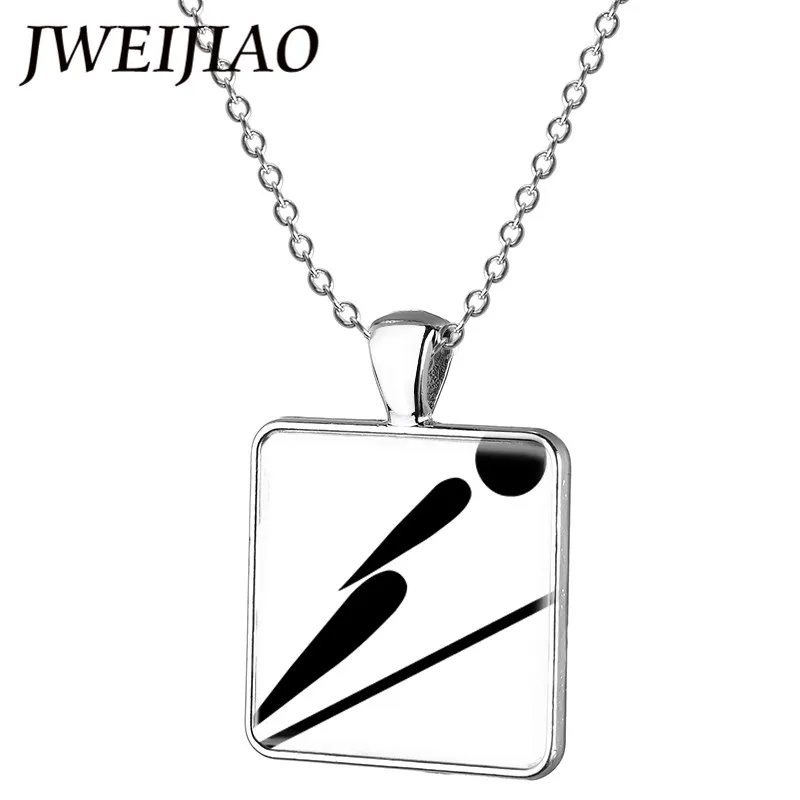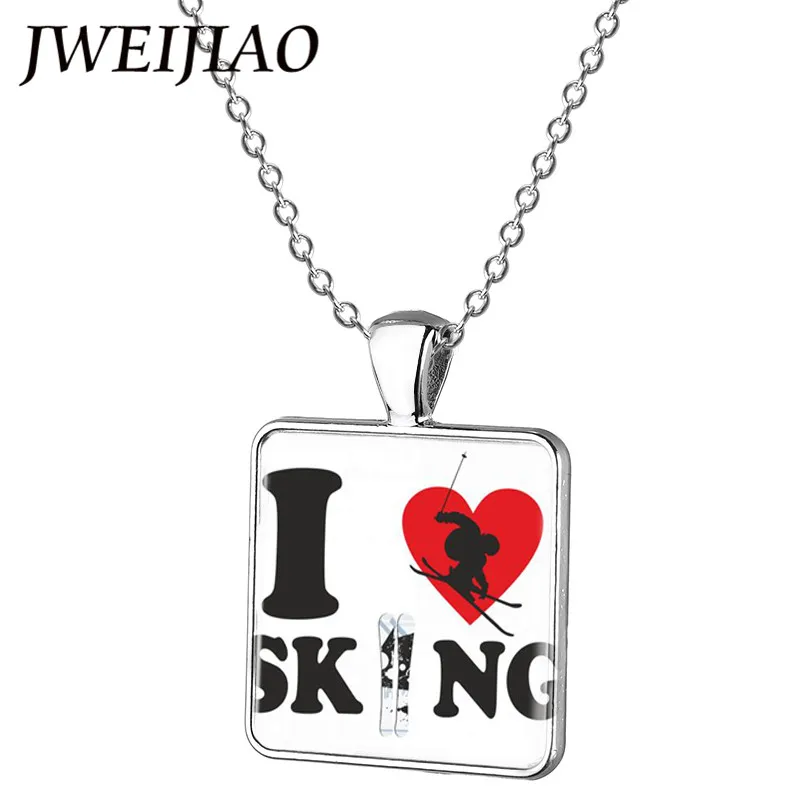 Ожерелье JWEIJIAO с квадратным стеклянным кулоном, украшение для катания на лыжах, сноуборде, силуэт катания на лыжах, художественное изображение, цепочка, свитер, SG04