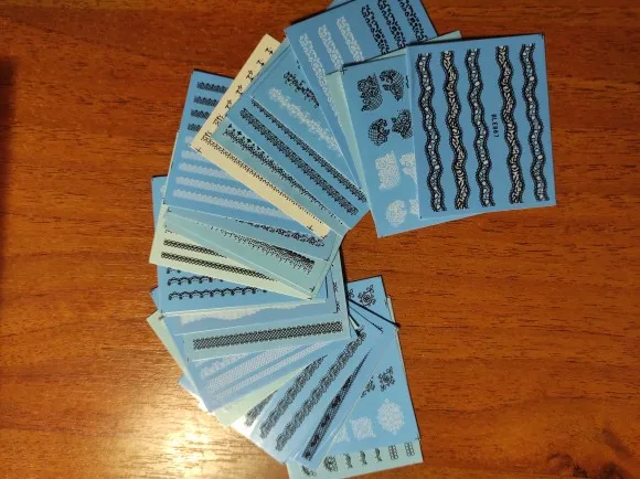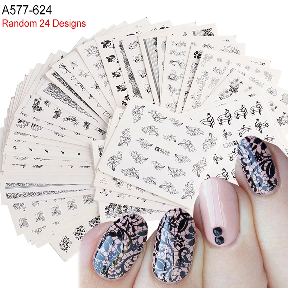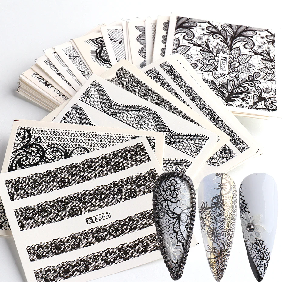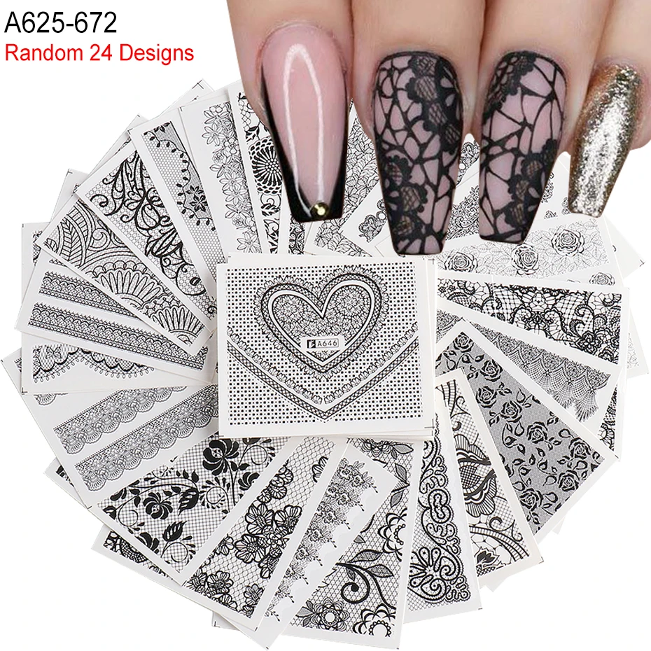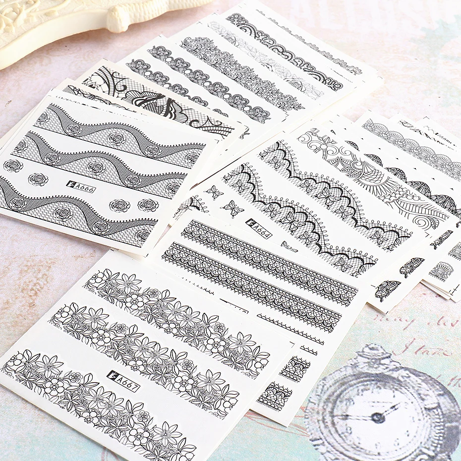 Особенности:100% абсолютно новые татуировки для нейл-артаРазмер: 6.4x5.2cmЦвет: черный цвет; Белый цвет;Упаковка: 24 листа переводных наклеек для ногтей в наборе ons