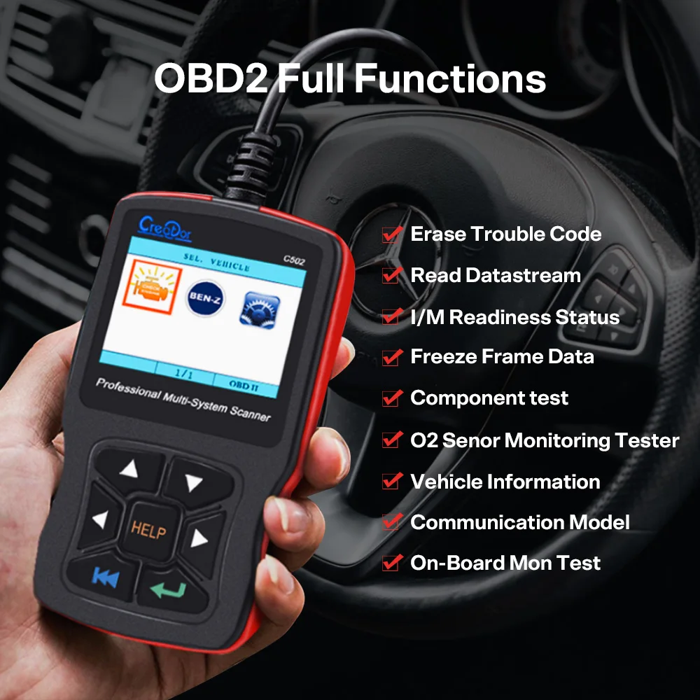 CRETOR C502 OBD2 функции: считывание кодов, стирание кодов, информация об ЭБУ