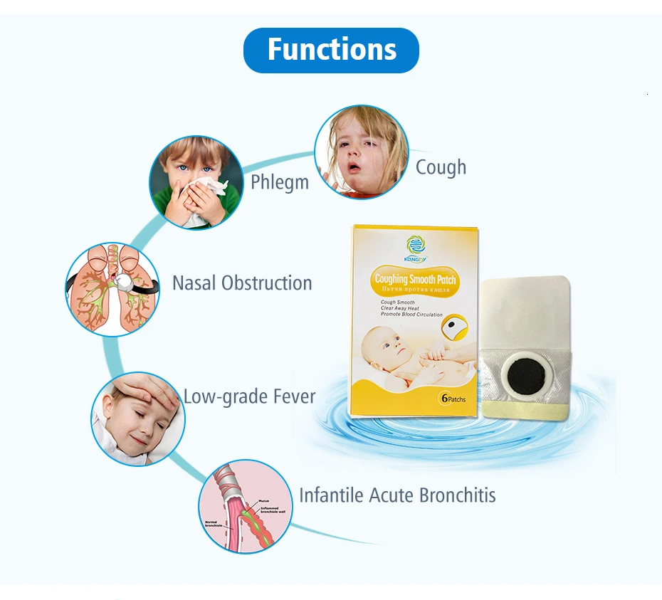 Патчи KONGDY от кашля 12 шт.2 коробки, Детские травяные пластыри от кашля для увлажнения легких, снятие кашля