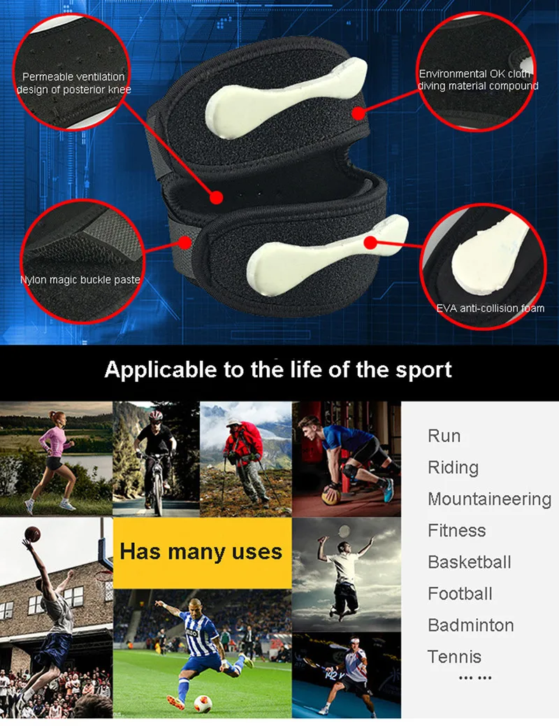 2. Этот наколенник защищает чашечку, добавляя давление с обеих сторон. И встроенный EVA анти-удар пены может лучше обеспечить чувство безопасности