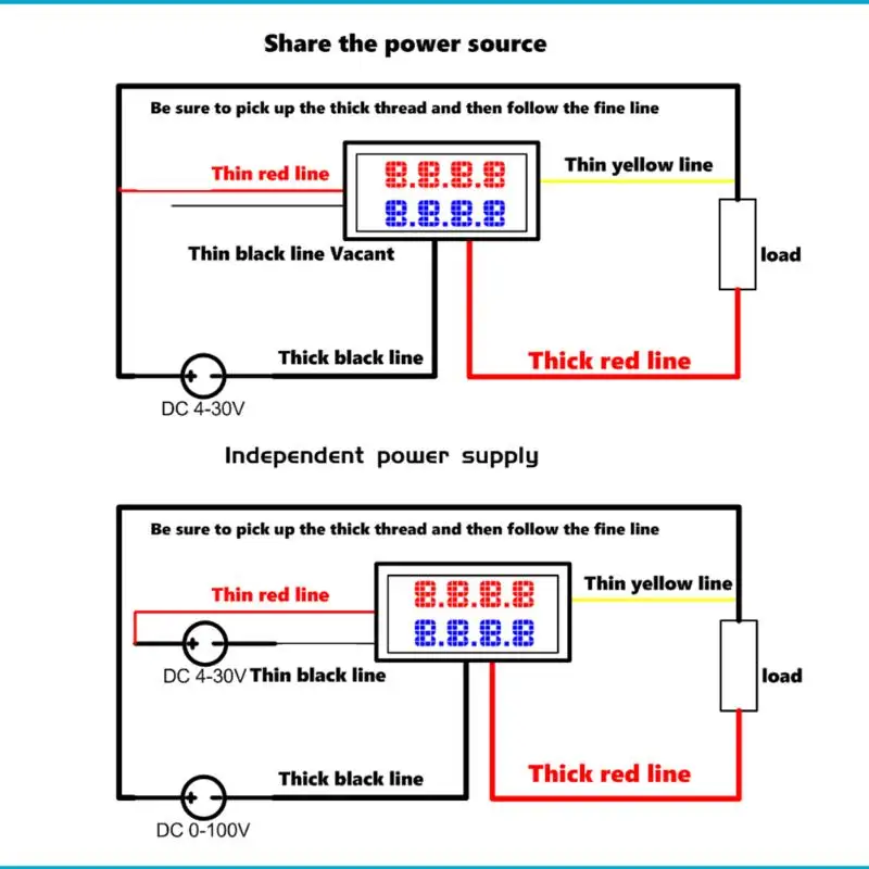 0,28 дюймовый цифровой вольтметр Амперметр постоянного тока 100 в 10 А синий красный двойной светодиодный дисплей Панель усилитель Вольт Напряжение Ток измеритель 2 провода