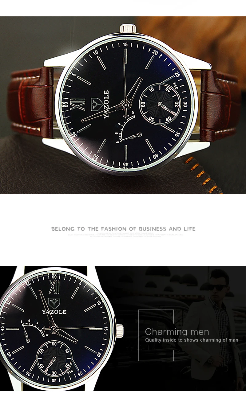 Мужские часы Топ бренд класса люкс 2017 часы Yazole мужские модные бизнес кварцевые часы кожаный ремень мужские часы Relogio Masculino