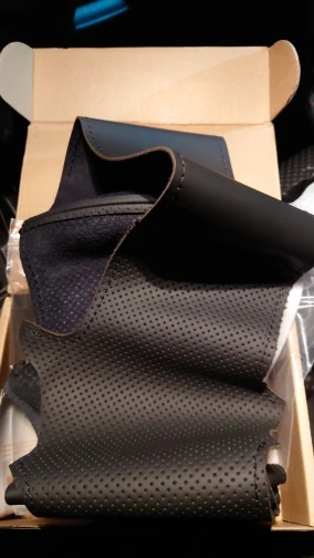Кожа черного цвета, прошитая вручную, блестящая Пшеница чехол рулев...