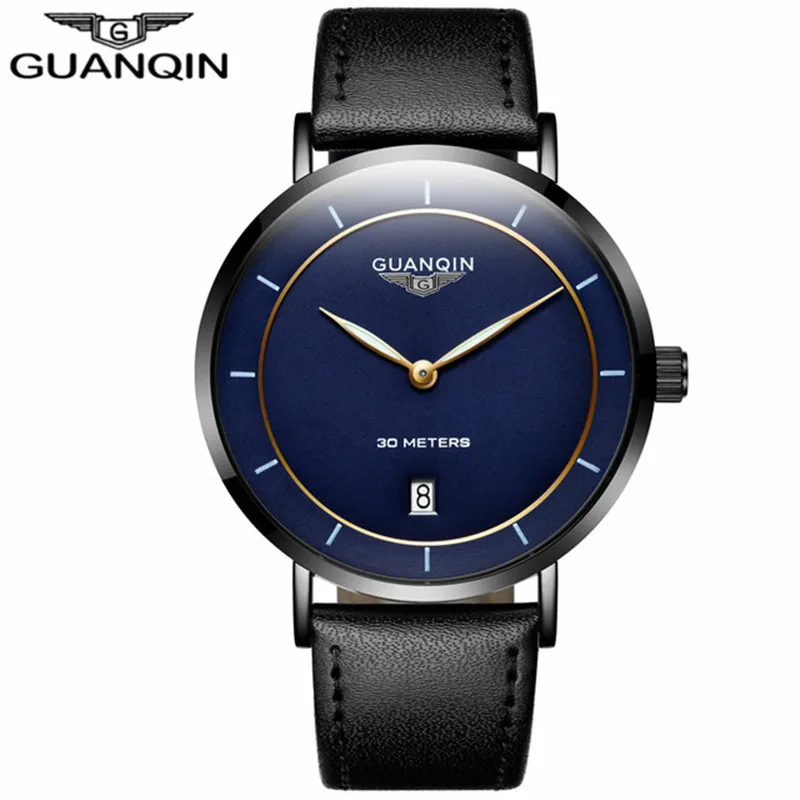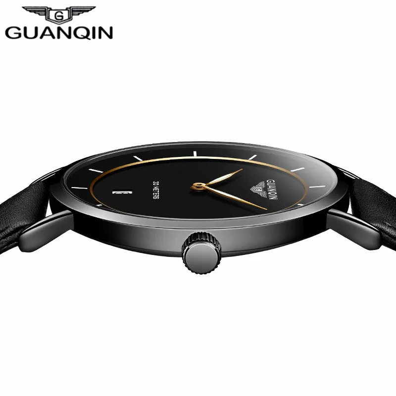 Часы наручные GUANQIN Мужские кварцевые, брендовые Роскошные тонкие водонепроницаемые, с кожаным ремешком, в стиле Hardlex
