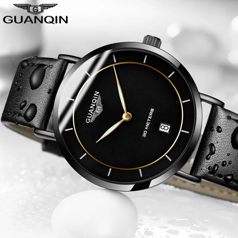 Часы GUANQIN Мужские кварцевые, водонепроницаемые, с кожаным ремешком