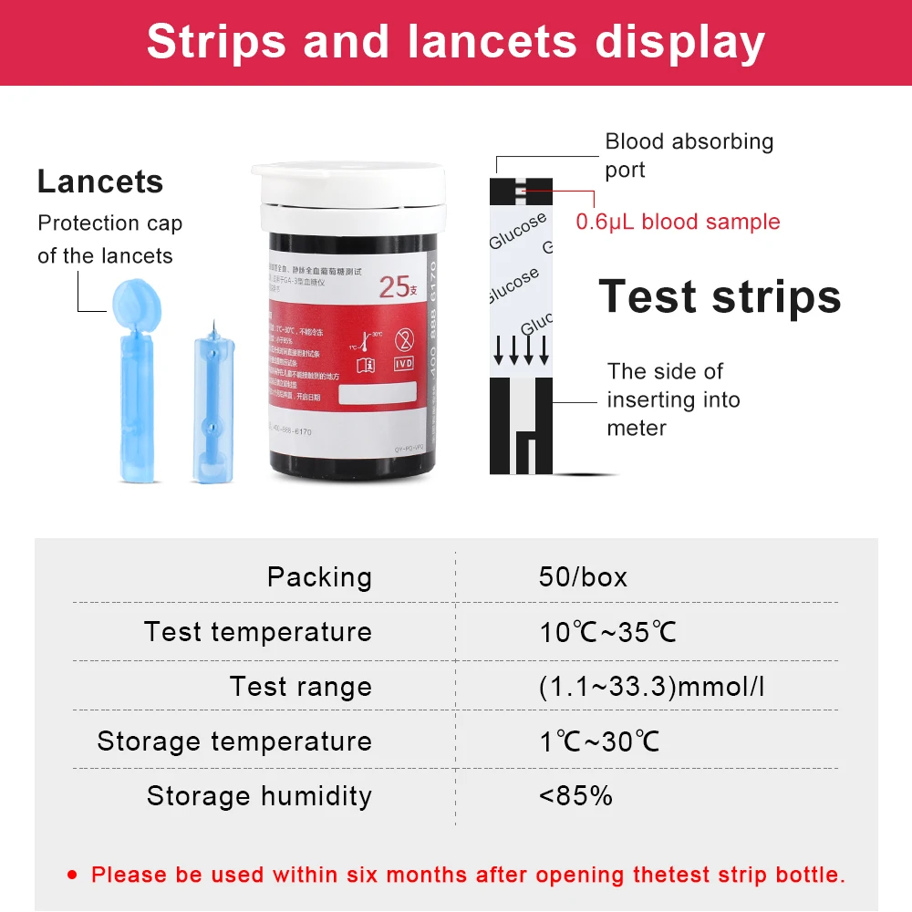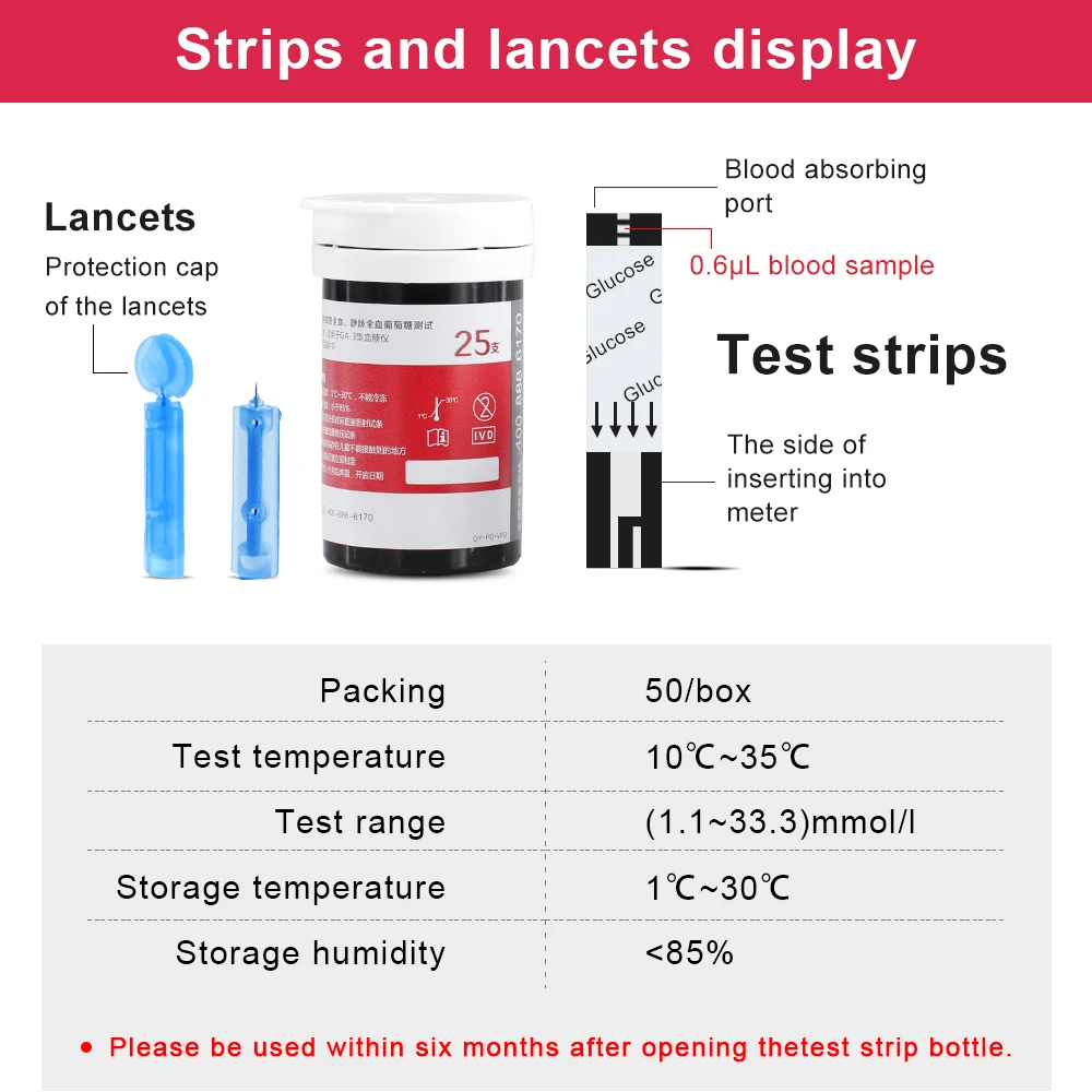 Тест-полоски Cofoe Yili 50100 с ланцетами и иглами для контроля уровня глюкозы в крови