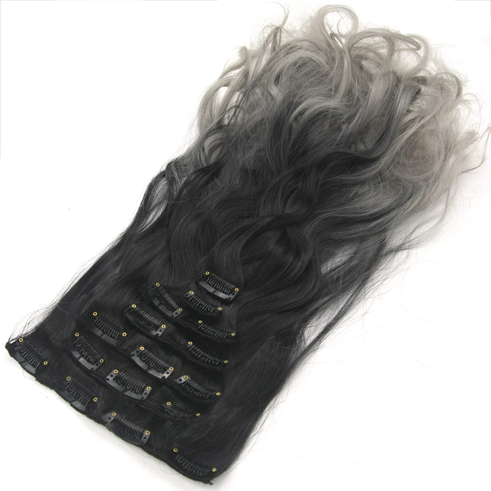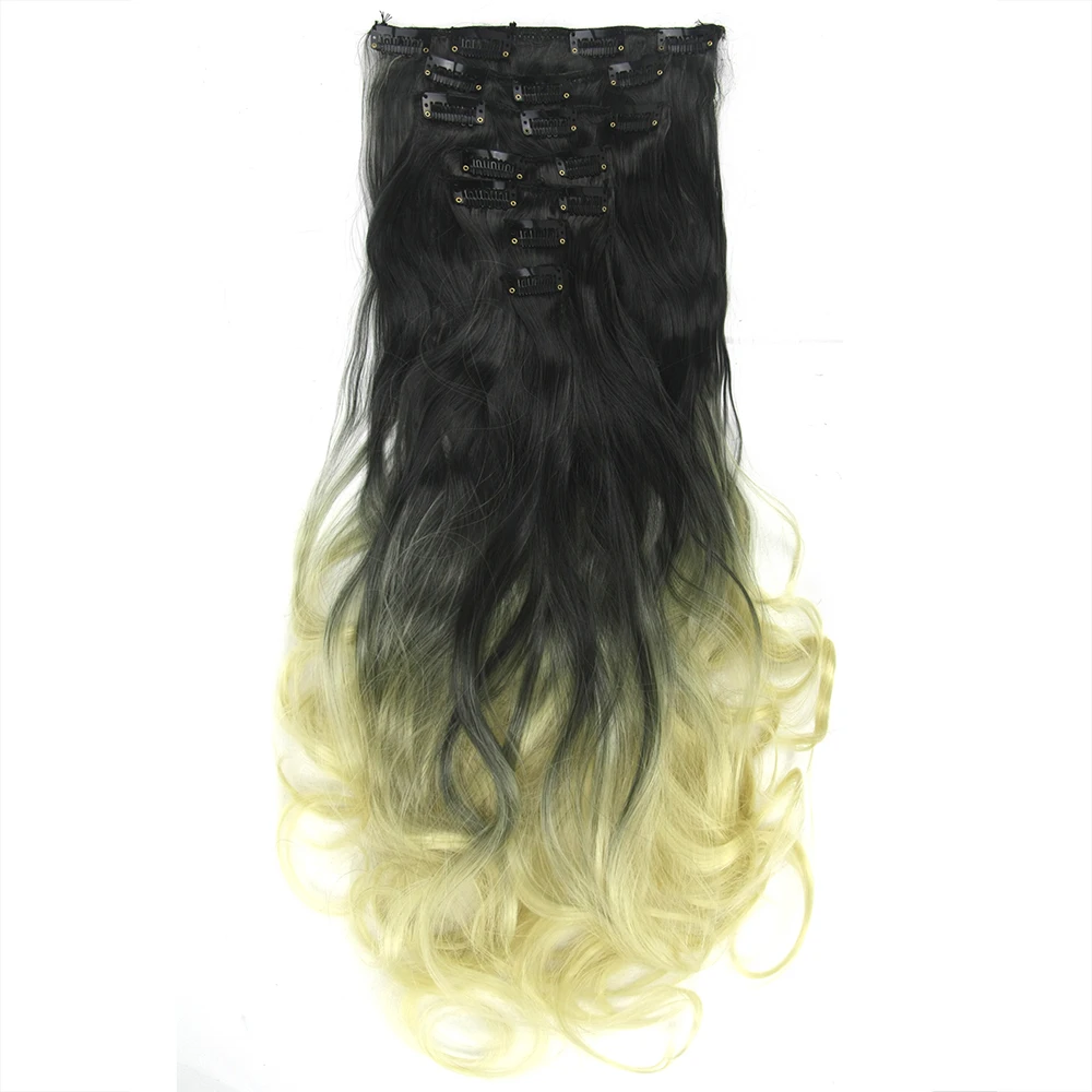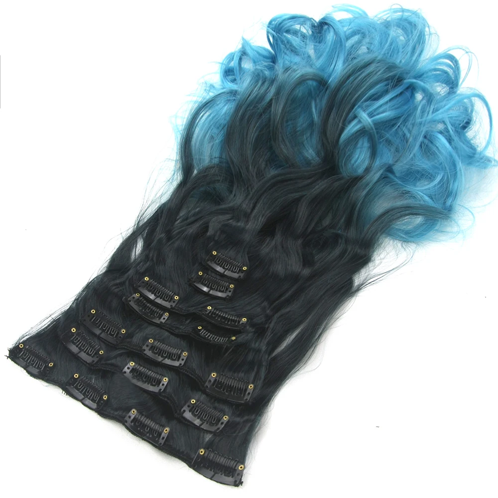 Soowee 7 шт.компл. длинные вьющиеся синтетические волосы черные к синим светлым волосы Омбре наращивание волос на клипсе для черных женщин Peruca