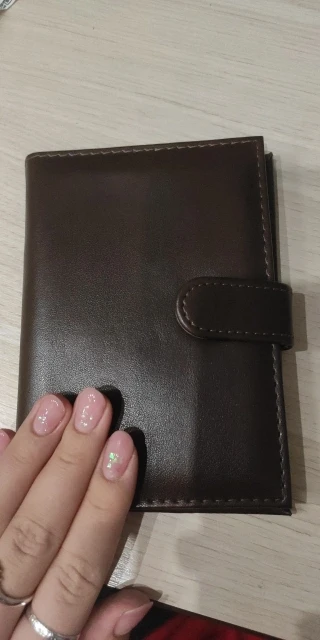 Очень нравится эта обложка, беру второй раз в другом цвете. Коричневый очень благородный, красивый. Материал мягкий, приятно держать в руке. Отделений много, влезают все документы, что обычно таскала по отдельности. Теперь очень удобно, все в одном месте. Паспорт влезает с трудом, но это даже хорошо, не выпадет. Застежка хорошая, все швы аккуратные, ничего не торчит. К покупке рекомендую!