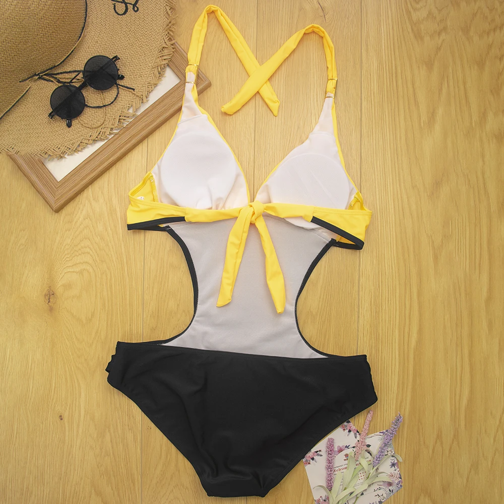 Женский слитный купальный костюм большого размера 2022, монокини с пуш-ап, купальный костюм, женский купальный костюм с высоким вырезом, трикини с V-образным вырезом и лямкой на шее