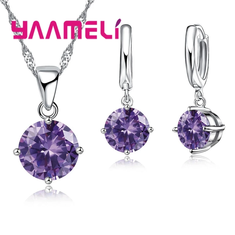 Стоимость продаж! Хорошее серебро 925 пробы женский ювелирный набор из австрийского кристалла, Круглый Подвеска со стразами фианит ожерелье серьги
