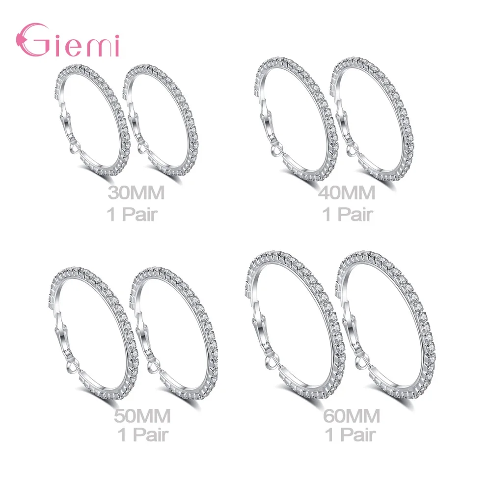Серьги-кольца из стерлингового серебра 925 пробы женские, круглые украшения для ушей, 30-90 мм, хороший подарок на свадьбу, День Святого Валентина, бижутерия